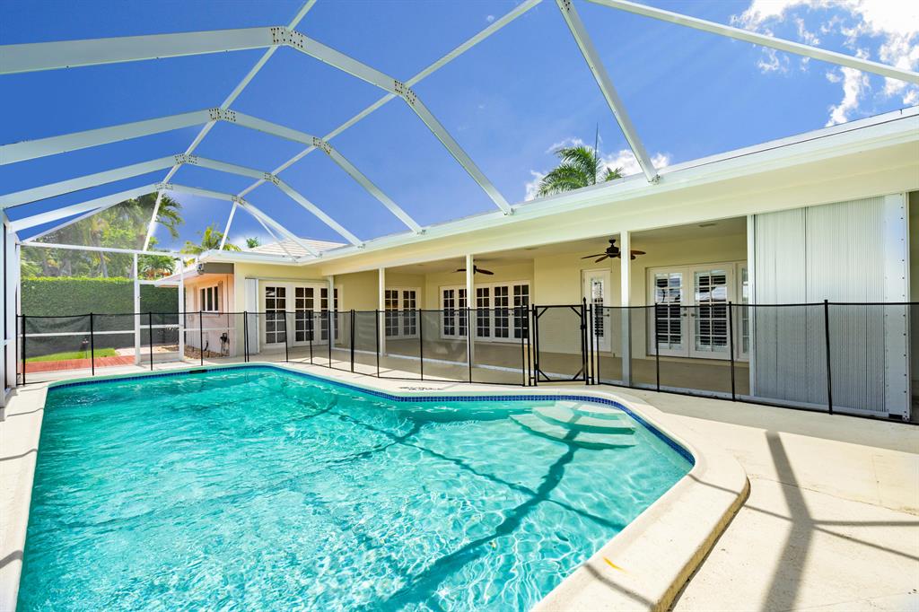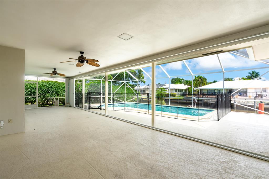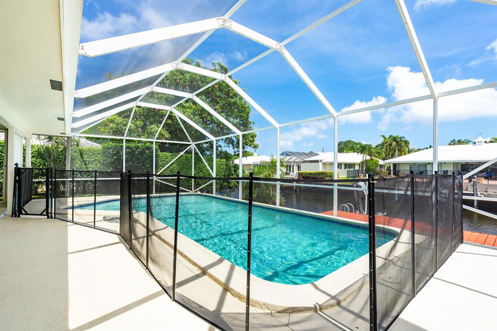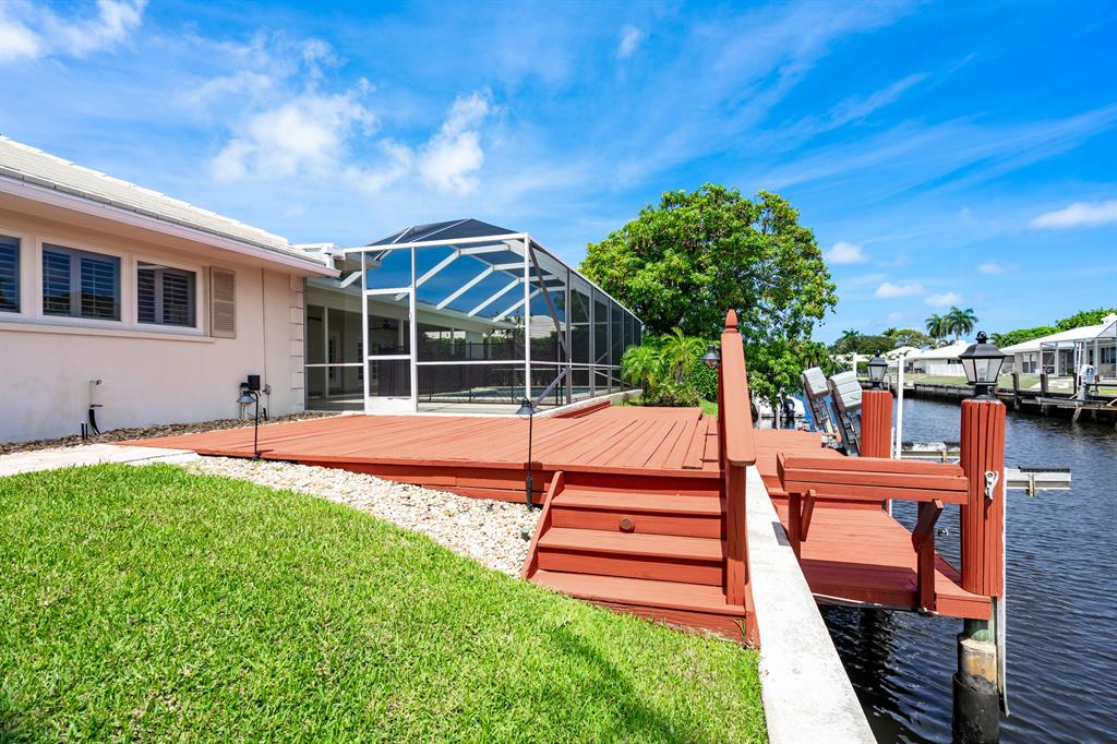 TRIFECTA in Camino Gardens! The only home on market with pool, dock & boatlift. This spacious 3 bedroom 2 bath home will not last long. You cannot put a price on this view! Pull your boat up to the dock w/ both water and electrical hook up. You will be the envy of all your friends with this exclusive feature: an expansive lanai and screen covered pool, perfect for entertaining! It will astound you from the moment you walk in and see the beautiful hardwood floors throughout the living space. The bedrooms are spacious, all have lighted ceiling fans and new carpeting. The shared bathroom is completely updated and includes a jacuzzi tub. The master over looks the pool and has the largest masterbath I have ever seen in this community!