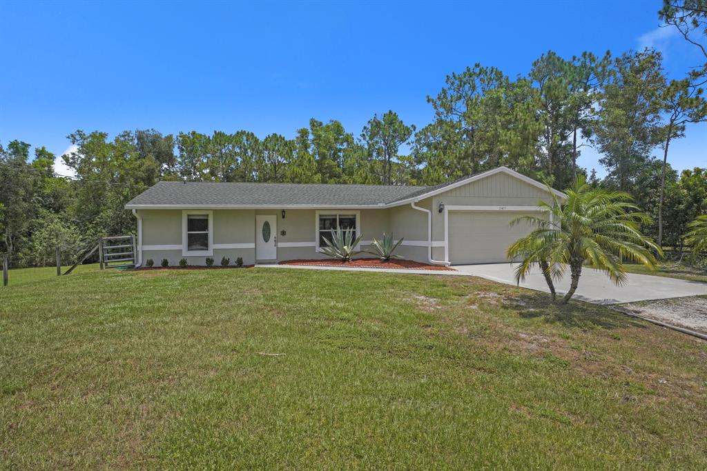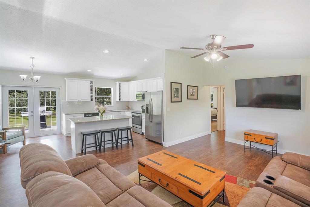 Move right in to this incredibly well maintained 3 bedroom, 2 bathroom home. The recently remodeled kitchen features an open layout with granite countertops and stainless steel appliances. Beautiful french doors lead out to the private open patio overlooking the expansive backyard, perfect for BBQ's and bonfires! Wood floors throughout the living areas and a nice split floorplan. Both bathrooms have also been recently remodeled. Enjoy your favorite music while getting ready in the master bath through the light fixture with bluetooth connectivity. The laundry room is inside and boosts a newer Samsung washer and dryer and a newer water heater. No need to worry about water with a new well pump and water treatment system. Plenty of space for all your favorite pets with just over an acre.
