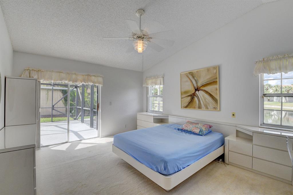 Enjoy this exquisite upgraded ranch style model in the heart of Boca Chase. Built and designed with pure elegance and warmth on a great lake lot, features 2 bed (original had 3 bed) 2 baths, 2 car garage on one of the best cul-de-sac lots in the community. The formal living area is warm and inviting with high ceilings. Large gourmet kitchen with white cabinets, granite counter tops, and newer appliances, opens up to a beautiful family room and large eat-in kitchen area. Newer A/C, accordion shutters throughout. Both bathrooms are updated, large enclosed patio looking over private lake. Shows absolutely nice!!!!