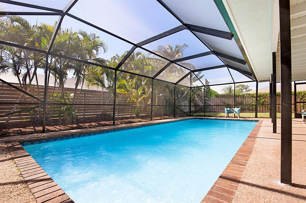 Beautiful 3 bedroom, 2 bath pool home situated on a quiet street on an oversized, corner lot in the highly desirable neighborhood of Pheasant Walk. This model features an open floor plan with great flow, split bedrooms, inside laundry room and tiled flooring throughout the living and kitchen areas. The home has been freshly painted inside and out and new carpeting installed in all bedrooms. Enter the home through the foyer which opens to a bright formal living area featuring vaulted ceilings. The kitchen opens directly into the great/family room and has a large pass through window to the screened in covered patio overlooking the pool. The master suite boasts a walk in closet and renovated master bath with dual sinks, separate shower and linen closet. The renovated second/cabana bathroom