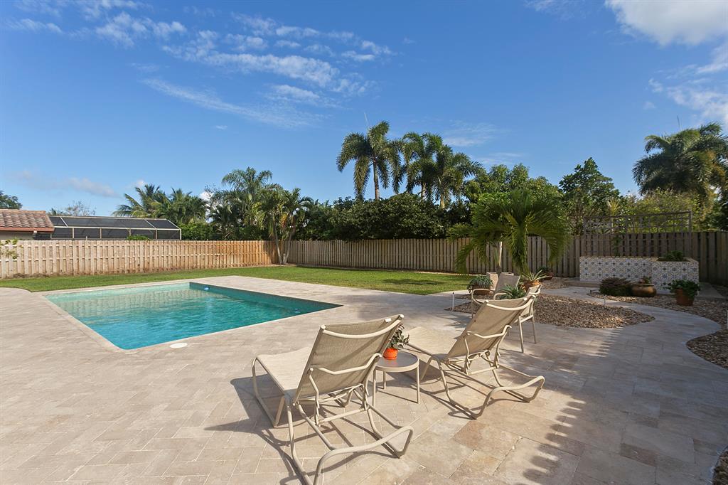 Great family home in this desirable East Boca neighborhood ~ Upgraded kitchen with plenty of cabinets, granite counters, stainless steel appliances, Breakfast Bar & walk-in pantry ~ Large living & dining rooms ~ Master BR has vaulted ceiling & updated master bathroom ~ All spacious rooms ~ Inside Laundry Room ~ Large paver patio with open pool ~ Patio fireplace/BBQ ~ Large yard fully fenced with southern exposure ~ Living room has an Impact window & all others have hurricane shutters ~ Reverse Osmosis Water filtration ~ 2 Car Garage w/extra wide paver driveway ~ Nicely landscaped ~ Excellent location on low traffic street ~ Roof Replaced Oct 2005 ~ Only minutes to beaches, shopping, Downtown Boca Beautifully maintained home in ''A'' Rated School District