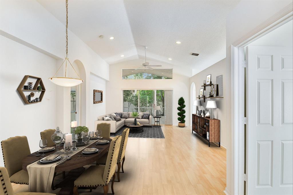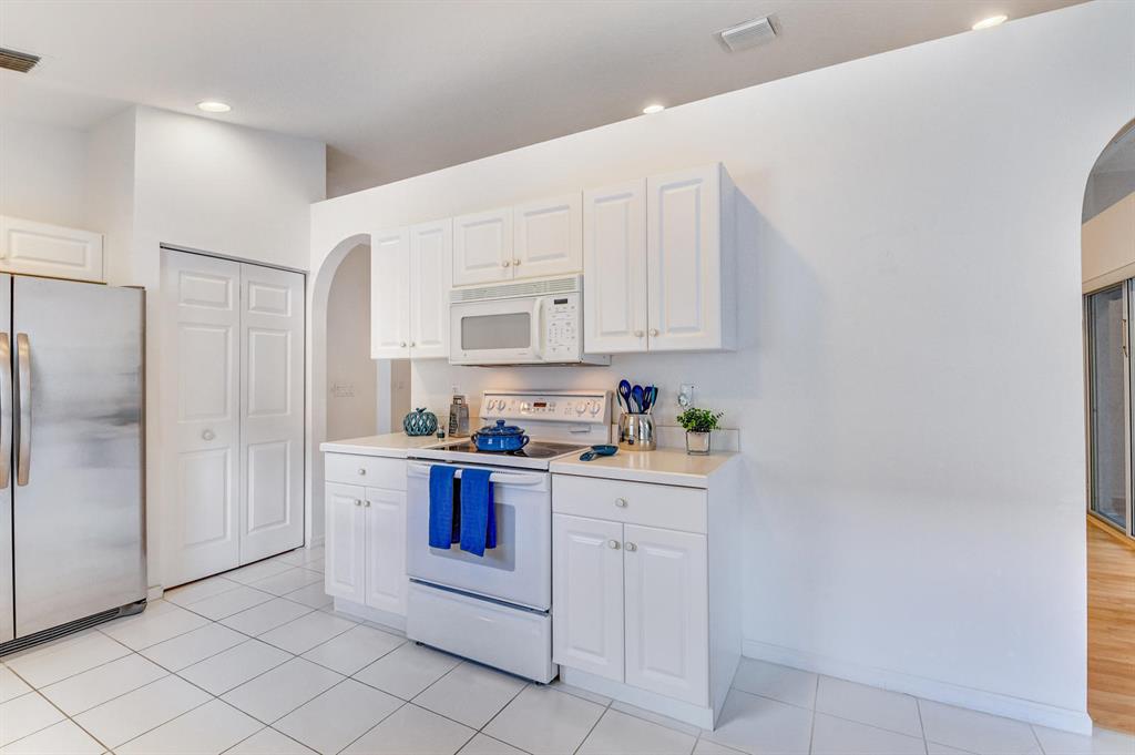 Spacious home features 3 bedrooms and 2 baths with a split floor plan & 2 car garage in the gated community of Crescent Lakes! All Age community (Not a 55+). Original owner. High cathedral ceilings in most rooms, tons of recessed lighting & a large eat in kitchen. Master suite his/hers walk in closets, master bath w/dual sinks, Roman soaking tub, separate shower & double sinks. Huge covered and screened patio/lanai w/private yard. Paver driveway/S Tile Roof. Inside laundry room. Incomparable Value/ Just a little TLC, paint & some imagination can make this your dream home. Crescent Lakes is an All ages Community (Not a 55+) with Low HOA fee of $235 a month which includes landscaping, irrigation, pest control, basic cable, & gated entry. Great price but seller is FIRM.