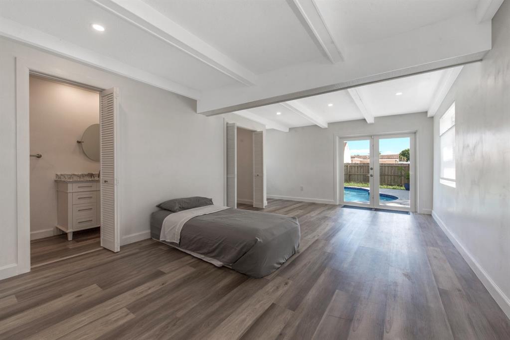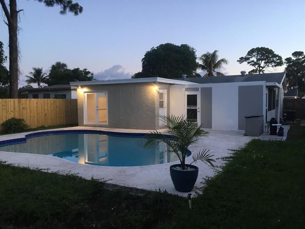 Completely remodeled 3 bedroom, 2 bath pool home with 300 sq ft bonus room and impact windows in central West Palm Beach! Come inside and enjoy spacious living areas with gorgeous flooring throughout along with an inviting kitchen which boasts brand new appliances, granite counters and wood cabinetry. All of the bedrooms are spacious as well. Both bathrooms have been updated and offer many upgrades including seamless shower enclosures. Outside you can enjoy a wonderful pool and private backyard. Bring your pets and kids there's plenty of room to roam on this property. The home offers many upgrades including new 3-tone LED hi hat lightening, new outlets, switches, new pool pump, filter, tiles and diamond bright. New water heater, 3 ton AC and septic tank and much more! All of this