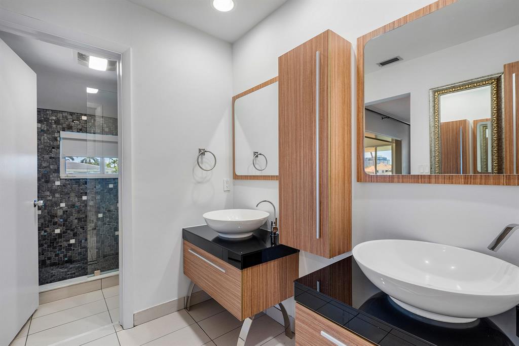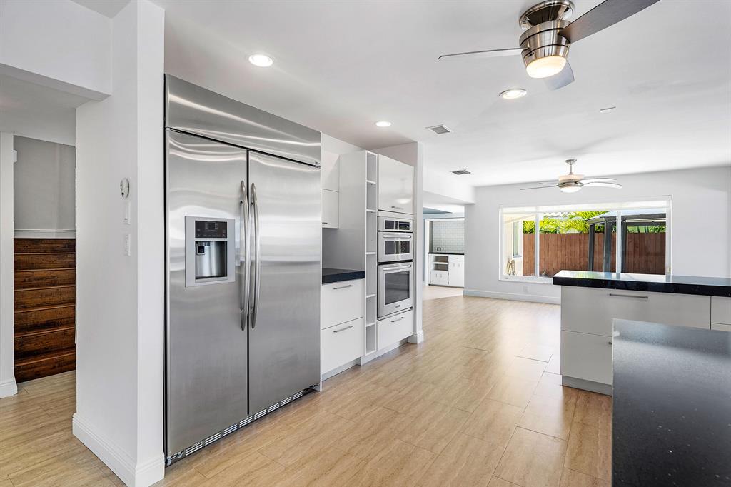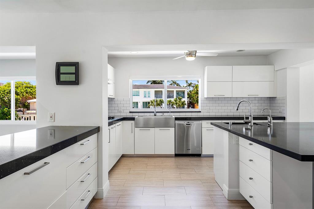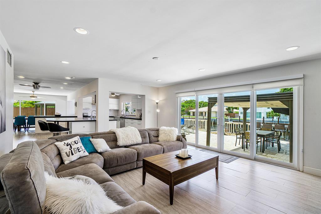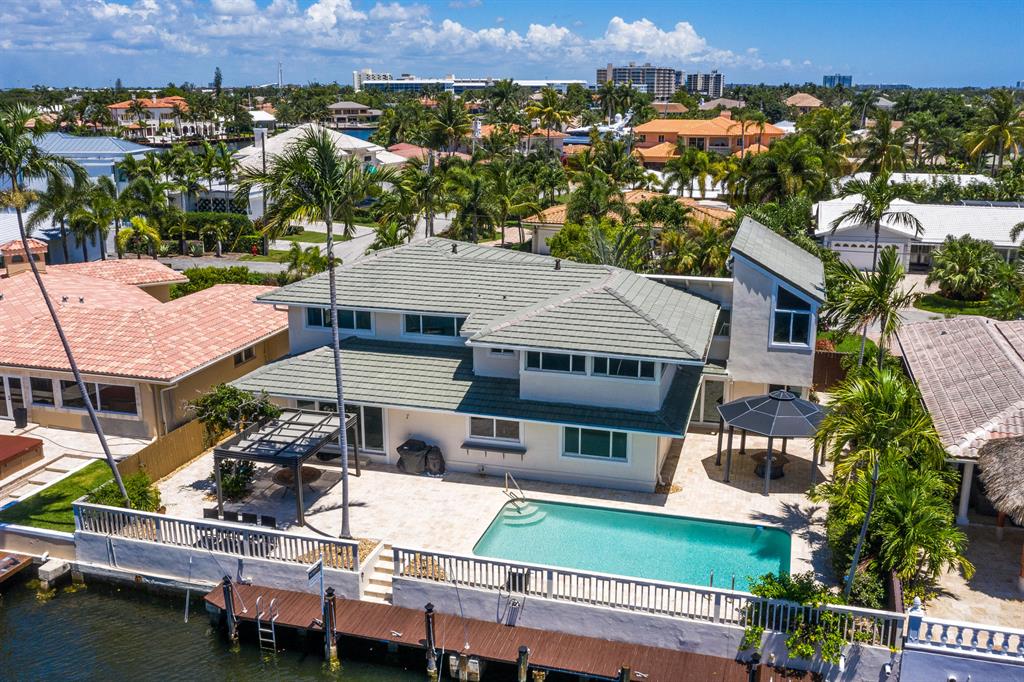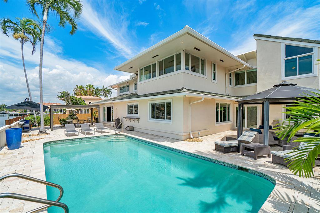 WOW! Just 2 lots off the Intracoastal, this boaters' paradise is ready for its new & proud owner! Boasting nearly 4,000 liv. sq ft, this 6bd/4ba Pool home has all the bells and whistles. 2 newer AC Units, newer seawall & an 80ft dock to accommodate your large yacht. This Modern/Contemporary home features 3-inch thick, premium Black Quartz countertops in the kitchen with a large and trendy island; handsome tile flooring on the first level, engineered wood on the second floor & travertine throughout the backyard / pool deck, along w/ 2 outdoor Cabanas making for great entertainment /relaxing space. All of the bathrooms have been beautifully renovated. A gorgeous water view from almost every inch of this house, hurricane impact windows throughout & sizable bedrooms make this A Must See!