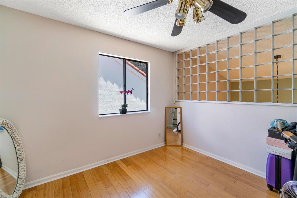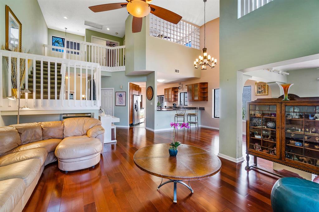Priced to sell! This beautiful updated home located in the much desired Town Center area offers a bright open floor plan with three bedrooms plus den/office, soaring ceilings and Brazilian cherry wood floors. Updated kitchen with wood cabinets, breakfast bar, granite tops & stainless appliances. Upstairs master offers bonus sitting room, beautiful updated bath with soaking tub & separate shower. Guest suite with private updated marble/tumble bath. Additional guest bedroom downstairs across from half bath. Tropical brick paver patio and spacious east facing private backyard perfect for added outdoor living space & entertaining. ROOF REPLACED APPROX 2006.