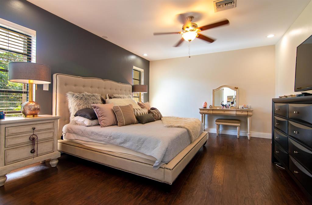 Completely Renovated one story Contemporary home on a 1/2 acre of lusciously landscaped land. Private Cul-de-sac with Marble & Stone fireplace, volume ceiling living room, wood flooring, spa-like master bathroom with free standing bathtub. Custom Contemporary Designer kitchen with Granite countertops and Custom Glass backsplash, stainless steel appliances overlooking the pool. Two newer concrete slabs on the side of the home to park a boat, jet skis or an RV.