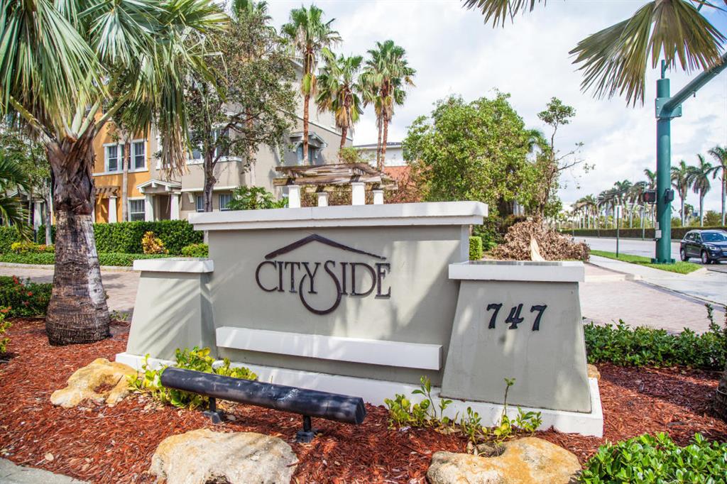 Rare, beautiful end unit with expansive lake views in the highly coveted Cityside community. This spacious 3/2.5 townhome comes with a two car garage boasts tons of storage! This completely move in ready lakefront unit features brand new wood-look plank tile on the first floor as well as new stainless Samsung appliances that have not been used yet!! The AC unit was replaced in 2016. HOA fees include outside maintenance including pool and amenities, basic cable and internet, water, trash and sewer, Condo insurance, and 24/7 gated manned security! Centrally positioned community 5 minutes from downtown West Palm Beach, I-95, and PBI airport. Walk to new Palm Beach Outlet Shoppes, Whole Foods, Target, Home Depot, and many new restaurants.