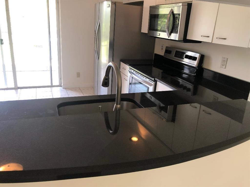 Gorgeous, beautifully upgraded 2 bedroom with enclosed loft (could be used as 3rd bedroom) townhouse with magnificent water view! Freshly painted. Large kitchen with stainless steel appliances and granite counters. No popcorn ceilings or carpeting. Tiled downstairs and wood laminate upstairs. Full-sized washer/dryer, back patio with storage room & hurricane shutters, and huge backyard with room for lounge chairs & bbq. Community has pool, basketball court, & child play area. Available now with fast association approval.