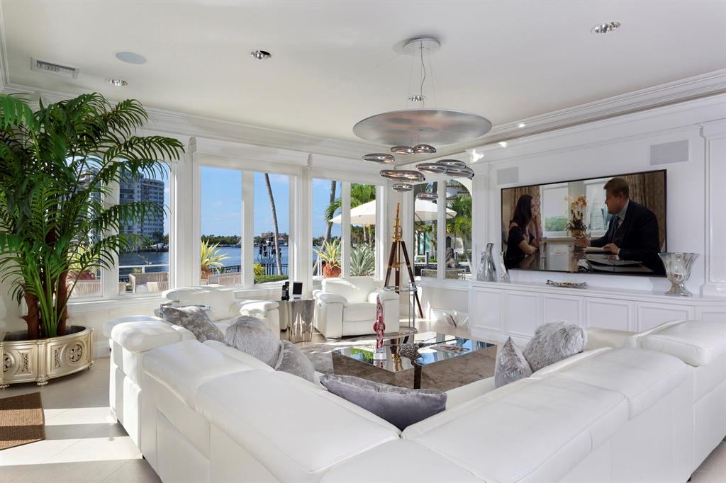 This impressive home is sited on a Prime Intracoastal Point Lot with 227' of wraparound waterfrontage with unobstructed views! Comprised of over 9,000+/- sq. ft. (6,600+/- under air), the bright interior features a gourmet waterfront kitchen open to the family room, a two story living room, grand dining room and a rich wood-paneled library/den all with stunning views. Upstairs, 3 large family en-suite bedrooms share a beautiful waterfront den and loggia. The private spacious master wing has its own private terrace and amazing water views. An infinity edge pool and spa, two covered loggias and multiple outdoor terraces provide resort-like entertaining space, all overlooking the 122 +/- ft. of protected dockage for a large Yacht!