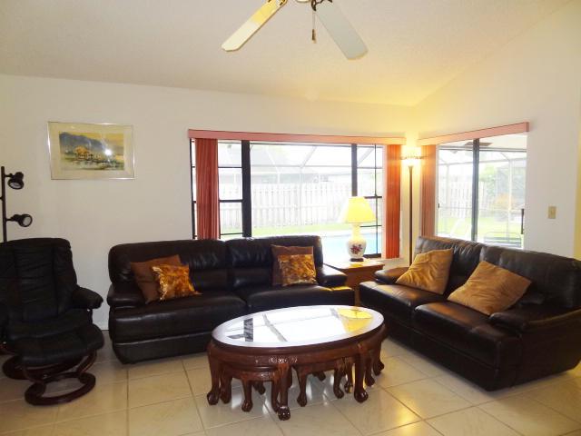 SUPER BOCA CHASE BARRINGTON 4 BED 2 BATH SCREENED POOL HOME WITH 2123 SQFT UNDER AIR, ROOF REPLACED 2009, WTR HTR REPLACED 2014, POOL NEWLY DIAMOND-BRITED AND POOL DECK RESURFACED 2018, NEWER HURRICANE GARAGE DOOR 2018, SPRINKLER OFF WELL -- SAVE LOTS OF $$$$! VAULTED CEILINGS, AND NEWER KITCHEN CABINETS. PARTIALLY FENCED BACKYARD, ROOFED PATIO IN SCREEN ENCLOSURE FOR YOUR BBQ RAIN OR SHINE, FULL HURRICANE PROTECTION.LOW HOA OF $105/MONTH WHICH INCLUDES BASIC CABLE, COMMUNITY TENNIS COURTS, AND COMMON AREAS! LEASE RIGHT AWAY, NO HOA APPROVAL.