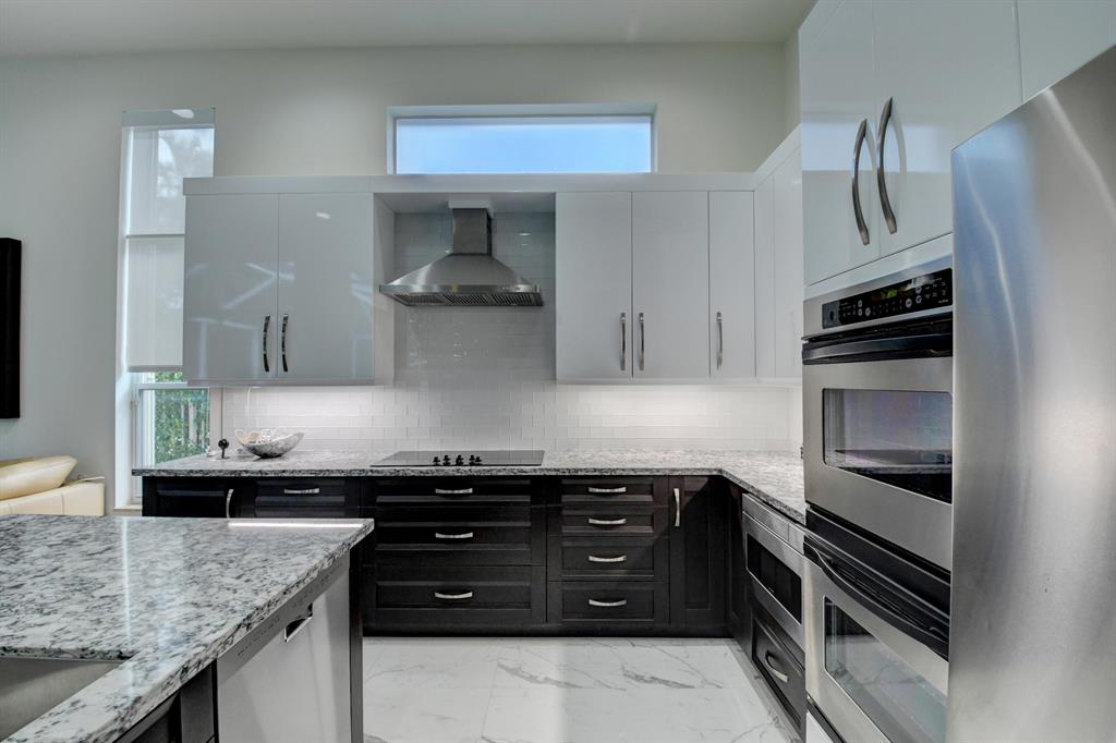 Updated 4 bedroom, 3 full bathroom family home with stunning modern tiled living area. New kitchen with high end quartz kitchen counter tops and subway style glass backsplash. Kitchen cabinets are top of the line - high gloss european style. Beautifully remodeled bathrooms. Everything designed to minimize upkeep with shower doors specially coated to avoid water drop marks and other similar features. Large covered patio area with water feature. Unbeatable location in walking distance to schools and places of worship.