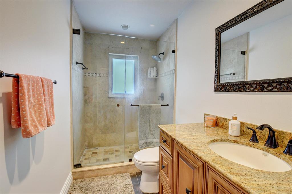 Beautiful Remodeled 3 Bedroom Pool home in EAST Boca Raton! Highly Desirable Neighborhood of Royal Oak Hills! Newer Roof installed 2015 * IMPACT Windows * Upgraded Kitchen with Granite counters, Marble backsplash & Stainless Appliances! Spacious floor plan with amazing pool views! Large Master Bedroom with 2 Walk in closets! Master overlooks gorgeous pool, extended stone pavers & side patio! Huge second bedroom with large walk in closet. French doors lead to good size third bedroom or den overlooking pool! Upgraded flooring, Plantation shutters, Built in Shelving, Renovated Bathroom, granite vanity & walk in shower. Newer Master Vanity! Inside laundry plus 2 Car garage! Large .20 acre Fenced yard & Shade Awnings! Downtown, Close to beach, Restaurants, Mizner Park, Mall FAU & I95! No HOA!
