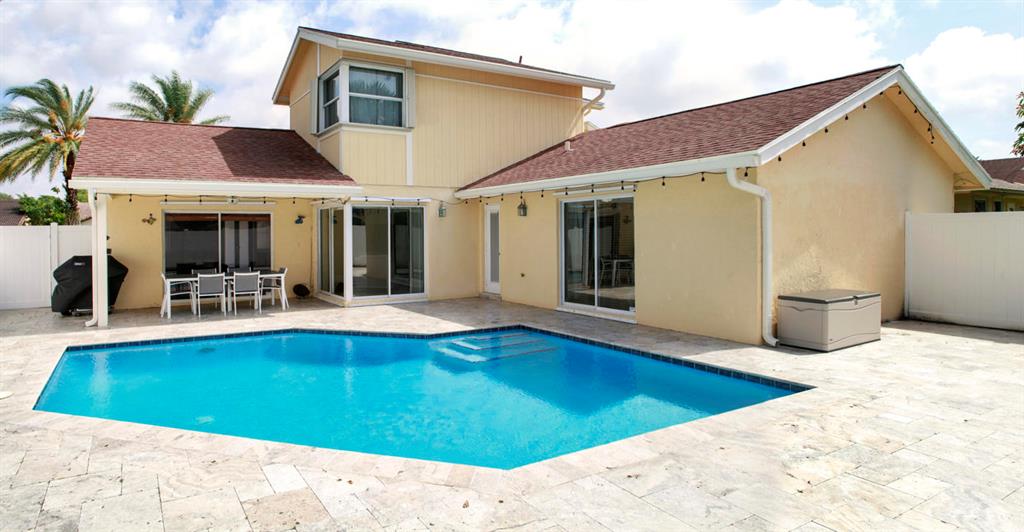 SELLER RELOCATED & MOTIVATED. MOVE INREADY! WILL CONSIDER ALL OFFERS. LOWEST HOA IN EAST CENTRAL BOCA. See list attached in documents.Great two story family pool home, master suite and 1/2 cabana bath on 1st floor. On a corner lot with a beautiful paver stone circular driveway. Enter through a new set of hurricane proof double doors with frosted glass panels. Upgrades include a travertine stone patio deck, child safety pool fence, pool heater, white patio fence, new garage door and 2 new air conditioning systems. Features light oak wood floors, crown molding and dramatic vaulted ceilings. The upstairs has a full bath and two additional spacious bedrooms, one with walk in closet. Central Boca location, close to restaurants, shopping -Town Center Mall, beaches. A+ schools.