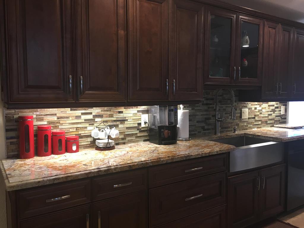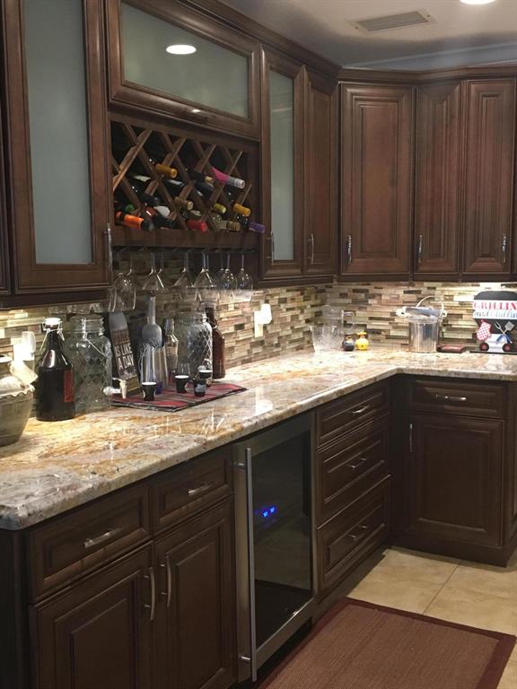 BACK ON MARKET! BEAUTIFULLY REMODELED 4/3! . TILE THRUOUT HOUSE. 1 BEDRM CARPETED. GOURMET KITCHEN INCLUDES 36'' WOOD CABINETS W/MOULDING & LIGHTS, GRANITE COUNTERS,TILE BACKSPLASH & A WINE CHILLER! SS APPL INCLUDE A DOUBLE OVEN WITH A WARMING DRAWER & A FARMHOUSE APRON SINK. LARGE GRANITE BREAKFAST BAR OPENS TO SPACIOUS LIVING AREA. OTHER FEATURES INCLUDE SPLIT FLOORPLAN, CROWN MOULDING & RECESSED LIGHTING. WIRED FOR CAMERA SYSTEM, ALARM SYSTEM & SURROUND SOUND. HOME HAS 2 MASTER SUITES. SPACIOUS MASTER BEDROOM HAS LARGE WALK-IN CLOSET. ALL 3 BATHROOMS HAVE NEW TILE & VANITIES. LARGE LAUNDRY ROOM. W/D DOES NOT CONVEY. COVERED PATIO. LARGE FENCED YARD. 1 CAR GARAGE. NEW RHEEM 4 TON 16 SEER A/C 2017, 8 YEARS LEFT ON WARRANTY. WATER HTR 3 YRS OLD. FLAT ROOF OVER ADDITION 5 YRS OLD. NO HOA!
