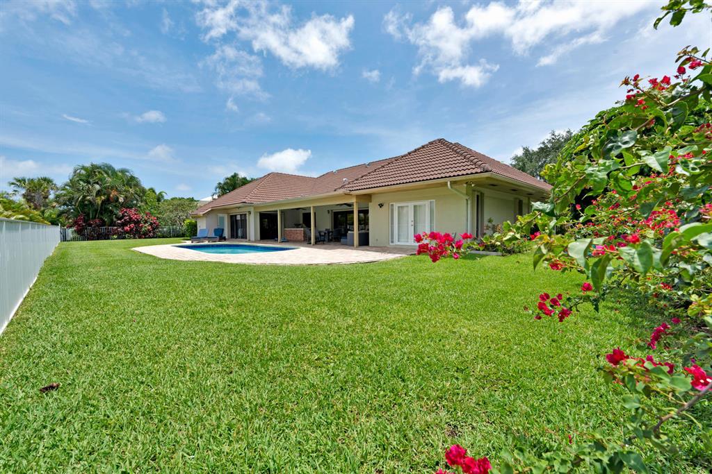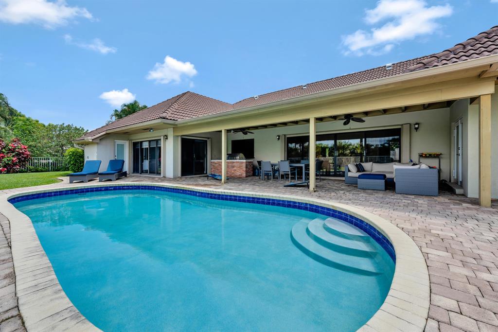 Updated 4 BR/3.5 pool home on the golf course in desirable Presidential Estates. Split bedroom plan, beautiful pool area with covered outdoor patio & built-in grill perfect for entertaining, large lot, & 2 car garage. Centrally located gated community with tennis courts. Close proximity to shopping, airport, and Banyan Cay. A true value at $665,000.