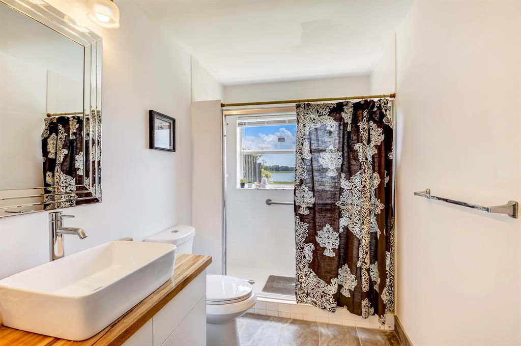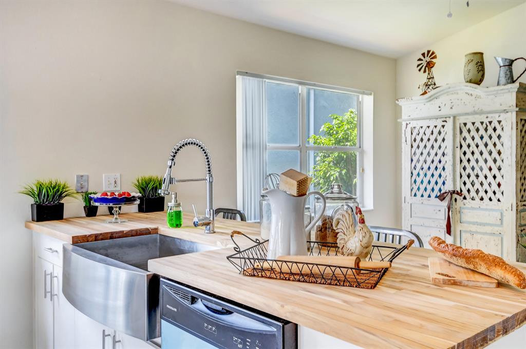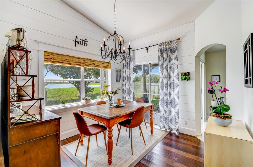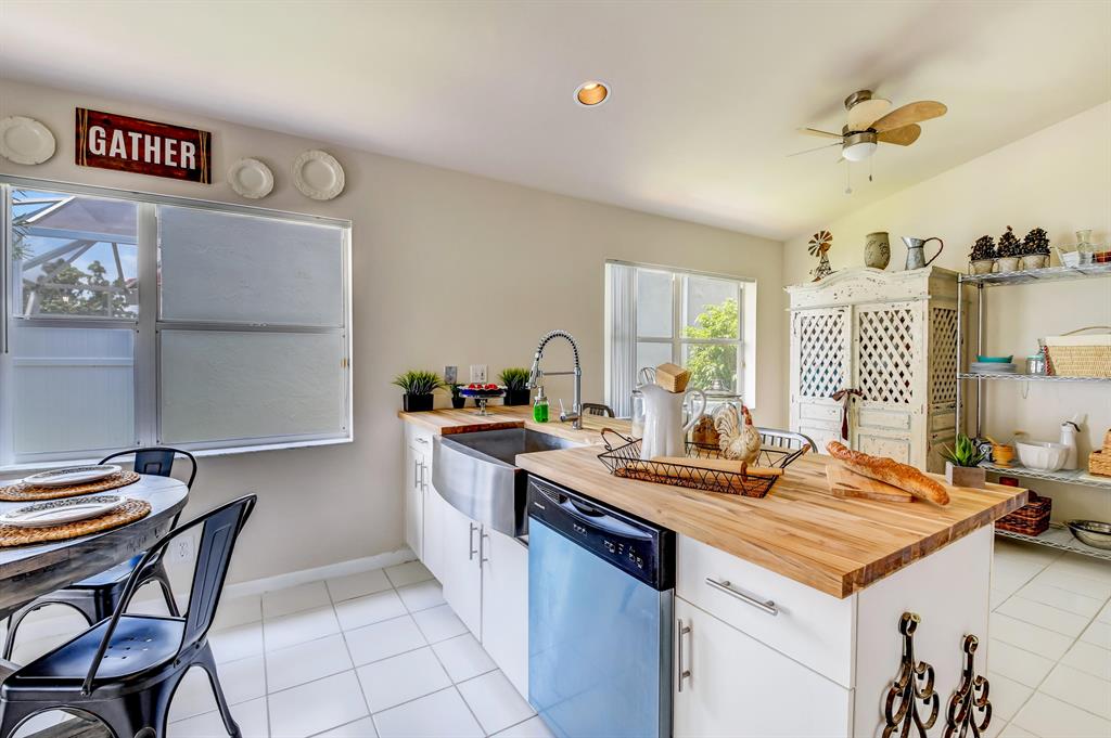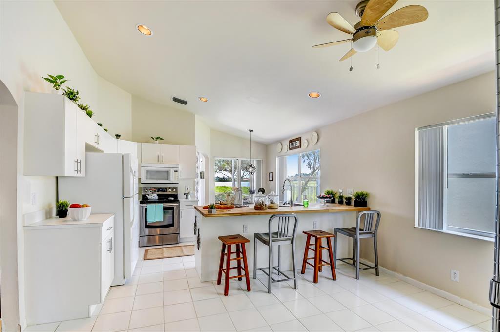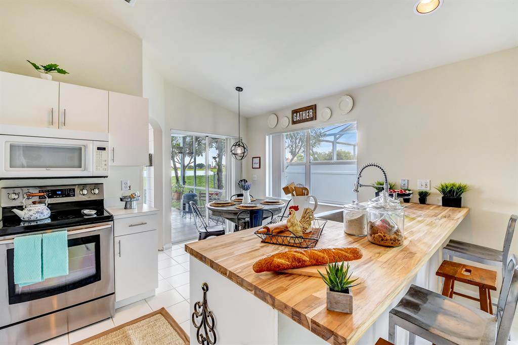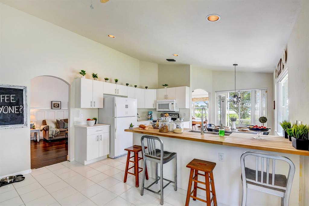 Updated Waterfront Modern Farmhouse in Boca Chase! Dramatic entrance w/soaring cathedral ceilings & picturesque windows of long and wide water views! Enjoy the sense of openness, volume & space. This home features 3 bedrooms, 2 baths with a split floor plan. Breath taking water views from almost every window! Decor you Find from Designers on HGTV, enjoy Bamboo hardwood flooring throughout, all new light fixtures, freshly painted, dining room window framed in farmhouse vintage trim, Ship lap wall treatment, wainscoting, foyer has Mediterranean tile. The list goes on and on......The fabulous eat in kitchen features brand new Teak butcher block countertop on the huge island with a new Stainless steel deep farmhouse sink. Both bathrooms are updated and quite unique in design.