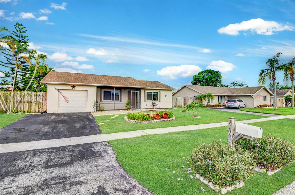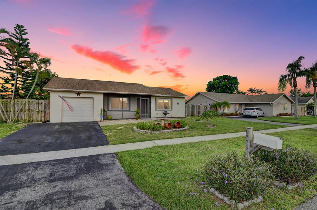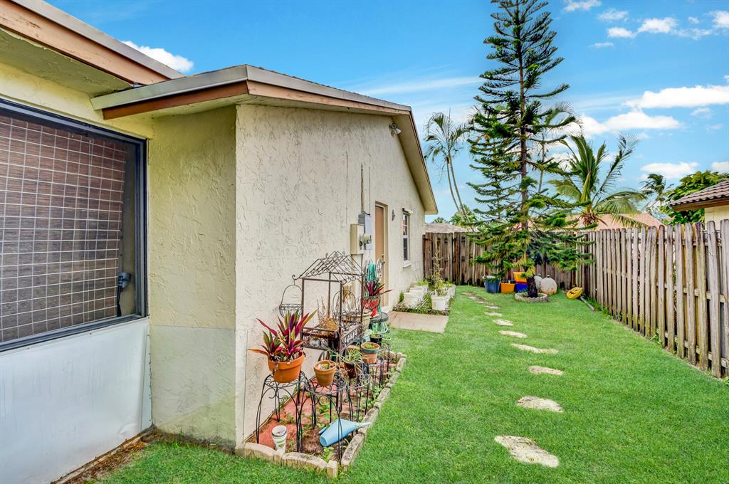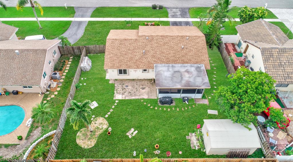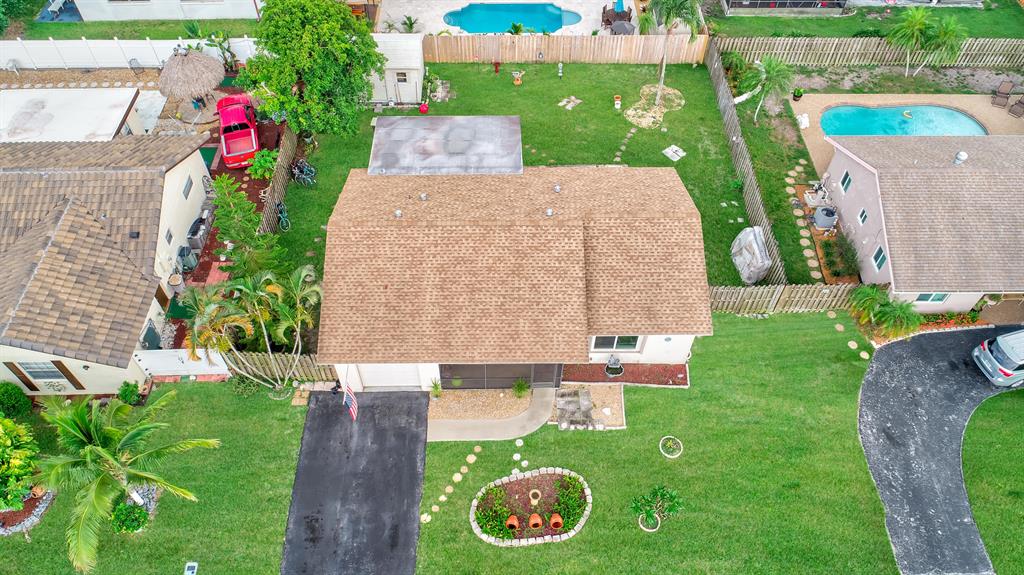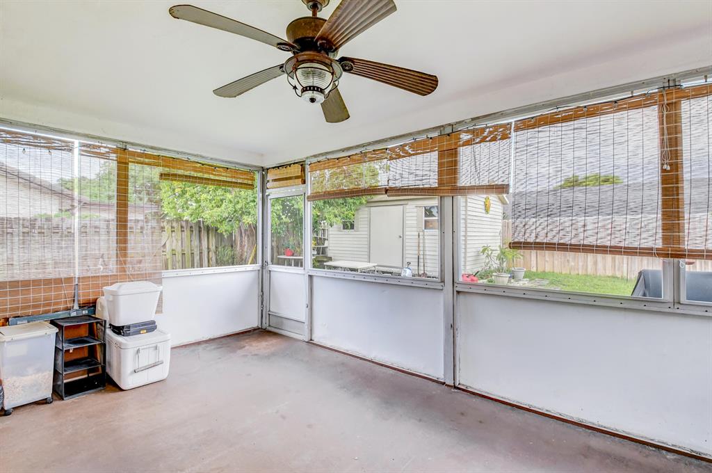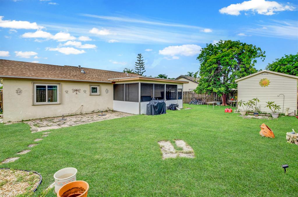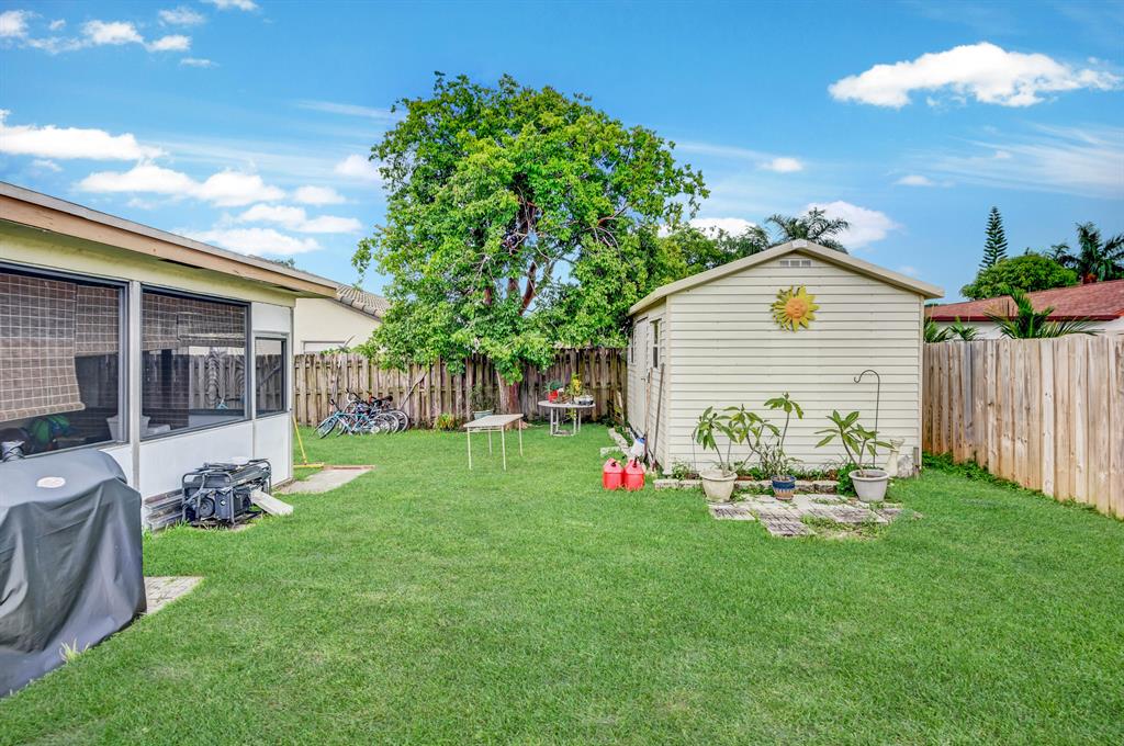Open, & bright 3 bedroom 2 Bath. Garage conversion into 3rd bedroom, floors built up to be level with rest of house w/impact glass window and closet. Tile flooring throughout. Impact Windows/Doors 2014/plus accordion shutters too. Sunny kitchen with tons of cabinets, newer stainless appliances & Osmosis Water filter in the kitchen sink. Large backyard that is fully fenced in & very private. Teds Shed in backyard anchored to the ground Hurricane Category 3 rated & electrical ready. Huge screened in/covered patio. Great curb appeal with the beautiful landscaping. Double wide driveway. Newer Roof from 2014 & new A/C replaced in 2010. New electrical panel. Large inside laundry/utility room with extra refrigerator & alot of pantry space. Flood lights in front and back of home.
