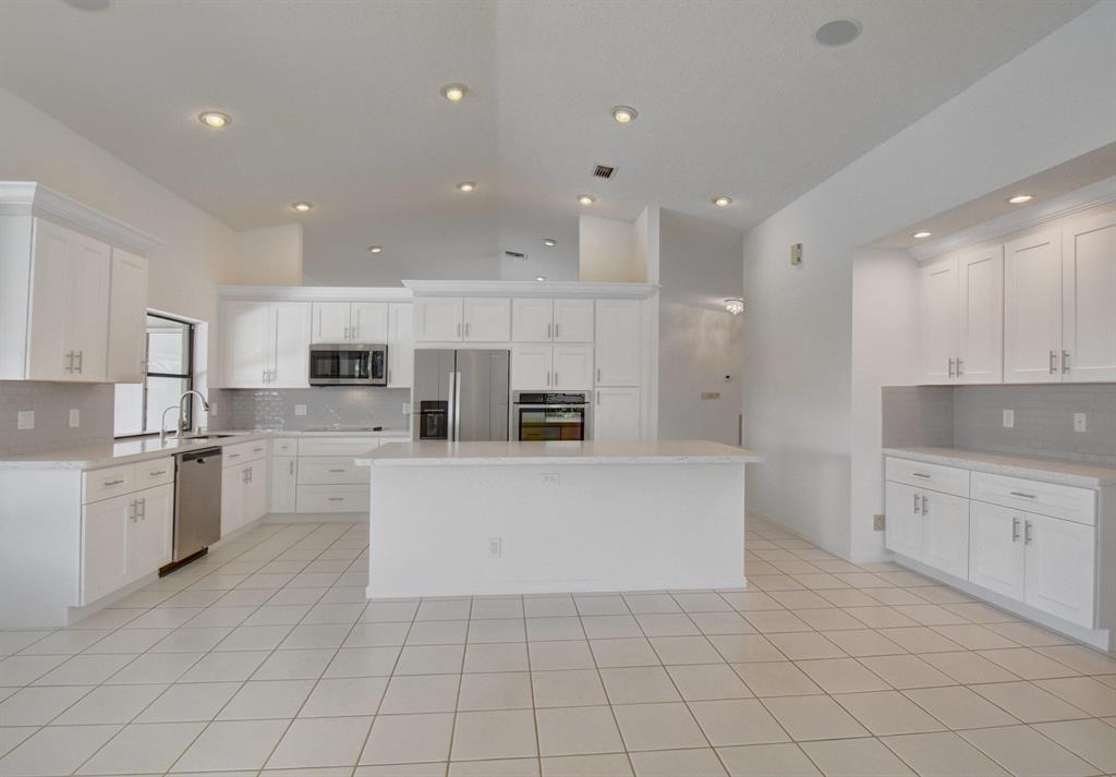 SPARKLING CLEAN, NEWLY RENOVATED 4 bedroom/3 bathroom home with pool/patio screen enclosure situated on a lake and cul-de-sac with complete privacy! Modern kitchen features quartz countertops, white cabinetry, NEW stainless steel appliances and subway tile backsplash. Home is equipped with central vacuum. Master bathroom features porcelain tile floors, quartz countertops and white cabinetry; Guest bathrooms have waterproof vinyl ''wood'' planks, quartz counter tops and white cabinetry. NEW carpeting in all of the bedrooms. Complete hurricane protection with accordian shutters, newer garage door and roof 2007. A/C unit replaced in 2015. Turn-key ready home! Ideal location off of Glades Rd. Excellent A rated elementary, middle and high schools!