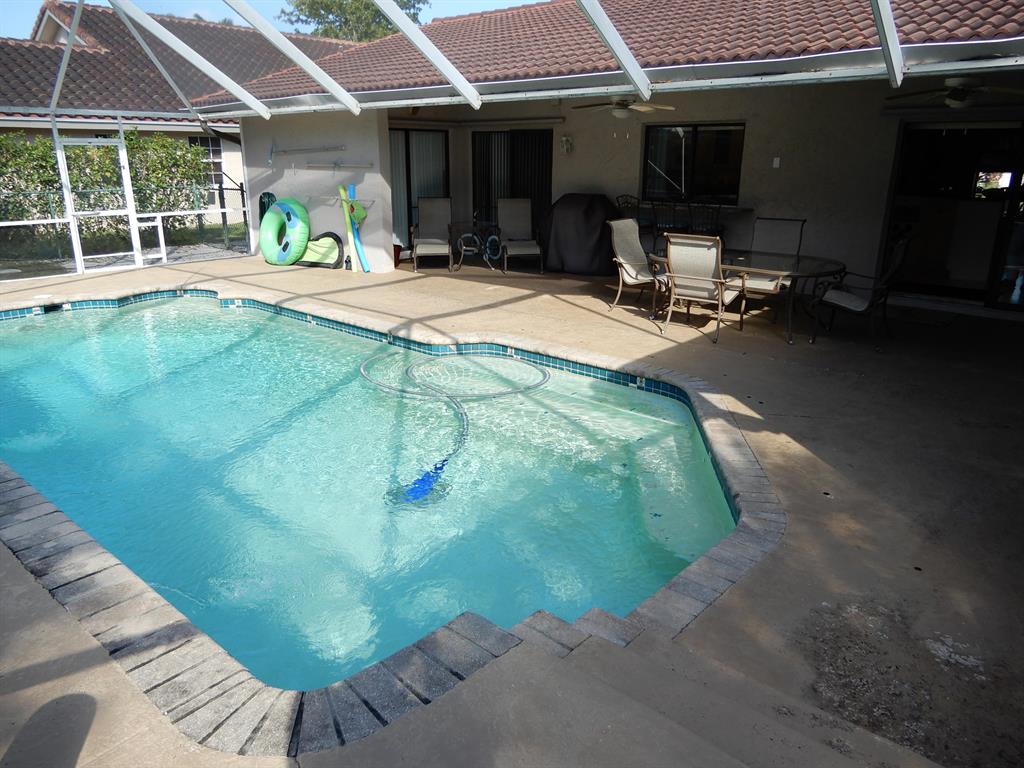 Lovely pool home, beautifully kept. Updated kitchen, tiled throughout. Double tied S tile roof. Large 2 car garage. Air conditioning; compressor 3 years old, air handler 1 year old coils changed in January 2018. Sprinkler system 1 year old. New water heater. Desirable neighborhood, walking distance to temples, church, Winn Dixie Plaza. Large screened patio, Large back yard. HOA includes basic cable. Hurricane panels. Burglar Alarm. TV in 2nd bedroom excluded.