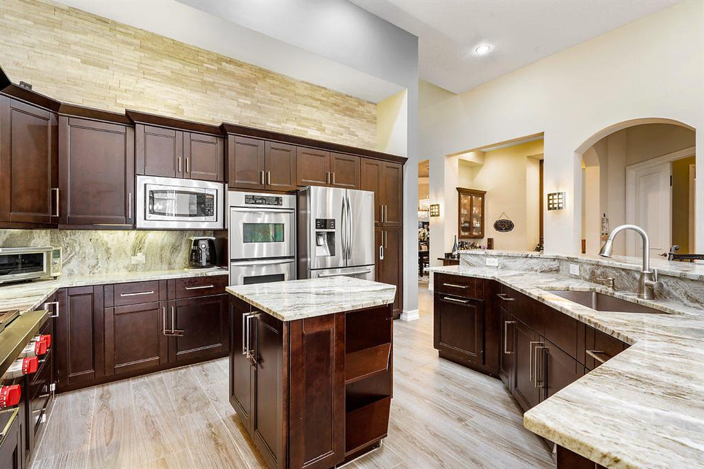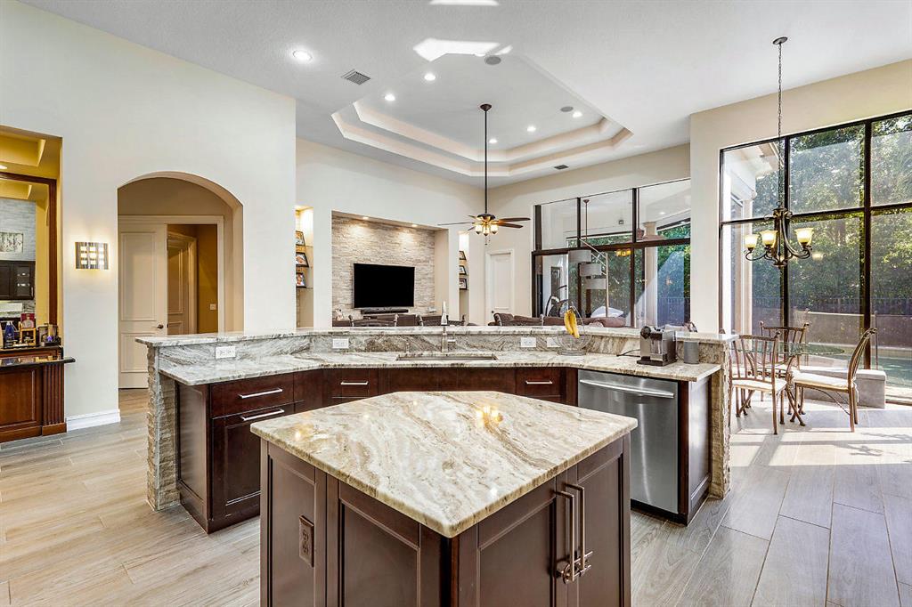 Best deal in The Oaks! Outstanding community with top amenities. Beautifully renovated 5 br, plus office and loft! 100K in upgrades over the past 2 yrs. New kitchen featuring top of the line appliances including a 4 burner Wolf cook top with griddle. New porcelain wood look tile (large plank). Kitchen and family room with gorgeous stone accents. European cabinets and designer quartz counter tops. Fabulous full bar with wine cooler. Automatic drop down screens for covered patio. Luxurious master suite with gracious master bath. Hurricane impact glass and Kevlar hurricane protection. Whole house generator on natural gas. The Oaks features one of the finest clubs in the area. Full service restaurant (The Oak Room)and lounge. Traditional/Modern styl