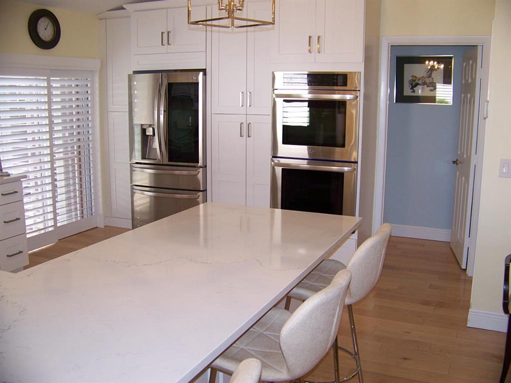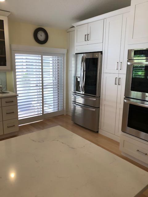 Home has been off the market in order for sellers to have the following done in 2019, a new roof & gutters installed in August as well as plantation shutters on all windows,,fans replaced, hot water heater with timer, Carrier air conditioner in August , replaced garage control, and timer for sprinklers. Prior to these items the kitchen was completely redone with plenty of storage in the custom cabinets, beautiful quartz counters, all stainless LG appliances, 2 double convection built-in ovens a refrigerator with several drawers & doors,a smooth top 5 burner cook top ,a built in microwave & custom hood. Exquisite Bella engineered wood floors throughout excluding bathrooms. Laundry room includes LG washer & dryer.Lovely pool and garden. If your buyer wants a move-in house-this is it!