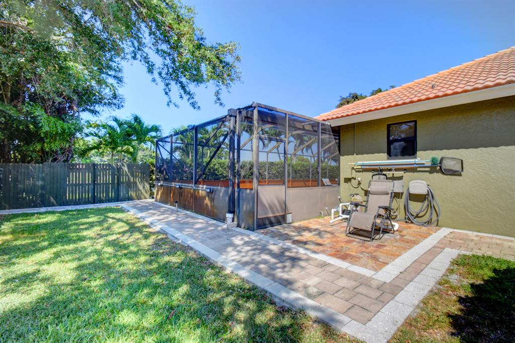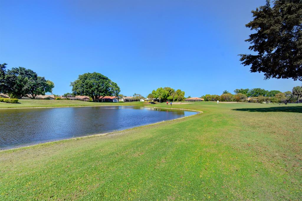Exquisite find in the Estate section of Boca Greens - This waterfront home sits on an oversized lot offering extra space between neighbors & added privacy. Golf course & lush tropical views from the moment you open the door. Vaulted ceilings give a spacious and open feel to this beautifully updated home. Custom trey ceilings in the bedrooms. Sub-Zero & Kitchen Aid appliances. Large French doors open up to screened patio area. Relax by the Saltwater Pool featuring dining & lounging areas, cabana bath, summer bar, and exceptional landscaping throughout whole property! NEW complete Hurricane impact windows. The back & side yard offer plenty green space. Great for friends, family, and pets! High speed fiber internet & cable included, A+ Schools & around 1/2 mile nearest place worship!