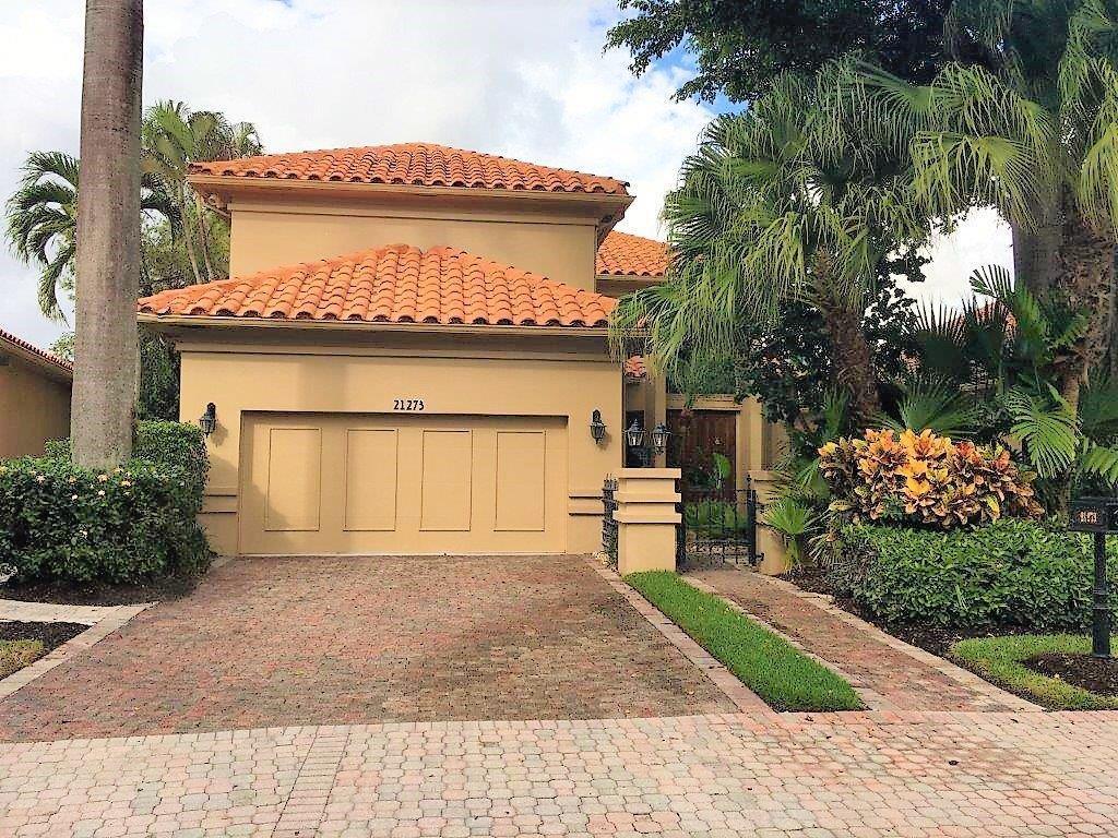 Mandatory Country Club Membership required. Beautiful 2 story single family detached home, 3 bedrooms, 3.5 bathrooms, 2 car garage and paved driveway, located in the gated community of Coventry in the Grove Boca Raton, FL. Enjoy the community pool, clubhouse, tennis and picnic areas. Just 10 minutes to the Florida Turnpike, 20 minutes to I-95 and to the best beaches Florida has to offer. Close to schools, shopping and fine dining. Beautifully maintained grounds located on a quiet tree lined cul-de-sac and has paved driveway and walkway leading into the entryway of the home. This home has and open concept floor plan with high vaulted/volume ceilings and plenty of decorative arch windows that allows all the natural lighting in and with a beautiful view of the golf course.