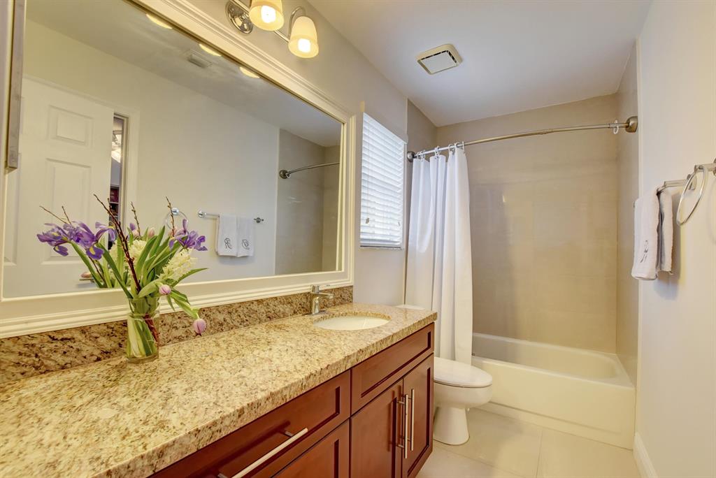 Completely upgraded and ready to move-in! Impeccably clean & bright 3 bed, 2 1/2 bath in highly desirable Boca Pointe. No mandatory membership. Volume ceilings, 24x24 Porcelain tile downstairs, Brazilian cherry wood laminate floor upstairs. Upgraded 36'' kitchen cabinets, SS appliances/granite counter tops. Bright & charming 9x9 breakfast nook. New stairs and upstairs loft could be used as Office/Library/Exercise area. New California closets in all bedrooms, pantry, and linen closets, new accordion shutters, renovated master bath, new window treatments, new interconnected smoke detector, new A/C unit, newer washer & dryer, new screened patio with clear material roof. Steps away from pool and guest parking! Great Central Boca location close to I-95,malls, restaurants, parks and beaches.