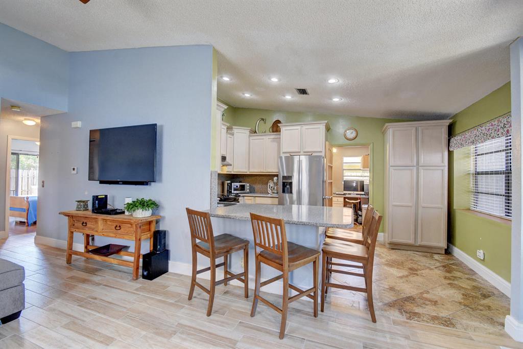 DON'T MISS THIS GREAT OPPORTUNITY! Located in wonderful West Boca Raton, this is a beautiful, quaint home for the first time homebuyer or someone looking to move out of their townhouse, apartment or condominium. The house has been modernized with upgrades that are timeless.; updated three bedrooms, two full bathrooms, vaulted ceilings, with one car garage. Tile and hardwood laminate flooring is found throughout the home. Upgraded, real-wood kitchen cabinets and a stone countertop / extended seating area adorns the classically styled kitchen. The roof and air conditioner are in excellent condition, having been recently, completely replaced. The home features a large shed, perfect as an extended fun workspace or for storing all of your toys.