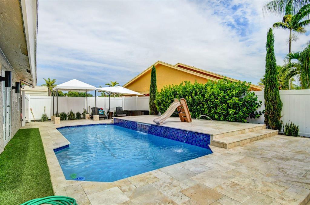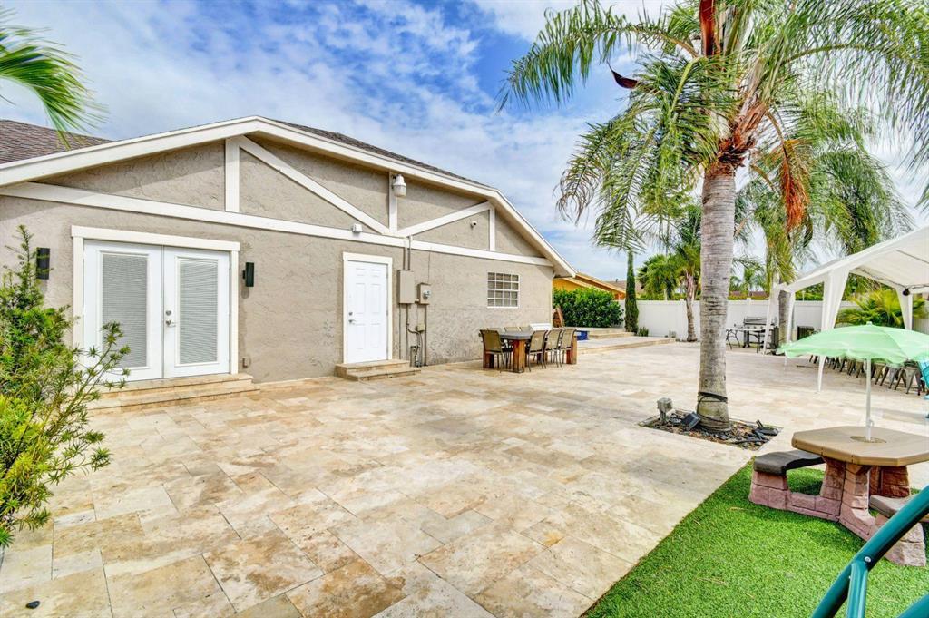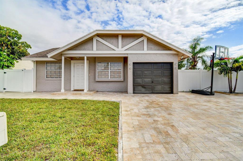 :Rarely available single family home in Boca Country Estates with in ground pool and a full cabana bath. Totally Renovated recently. 3/2 residence features vaulted ceilings, updated kitchen with wood cabinetry, upscale stainless steel appliances & marble counter tops. All porcelain tile inside. Both remodeled bathrooms. Two years old AC and Water Heather. Roof was changed in 2006. Pool water heater. Garage converted in a play room. As you can see on the pictures its very tropical ideal for outside lovers. Don't let this opportunity pass by.