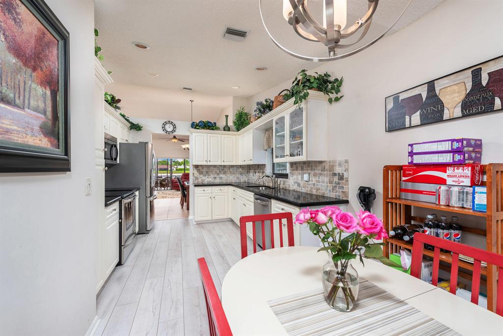 Beautiful single story lakefront home with 3 bedrooms, and 2 full bathrooms. The 2 car garage has been converted to a bonus room/play room/man cave. The home features a beautiful updated eat-in kitchen with stainless steel appliances, high ceilings in the living area, large and screened patio. House is freshly painted, ac units from 2017, and new irrigation system. Low HOA with only $120 month including: Comcast cable, community pool, great Boca Raton Schools, close to all retail stores. This is a pet friendly community.
