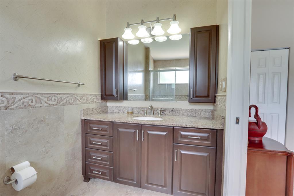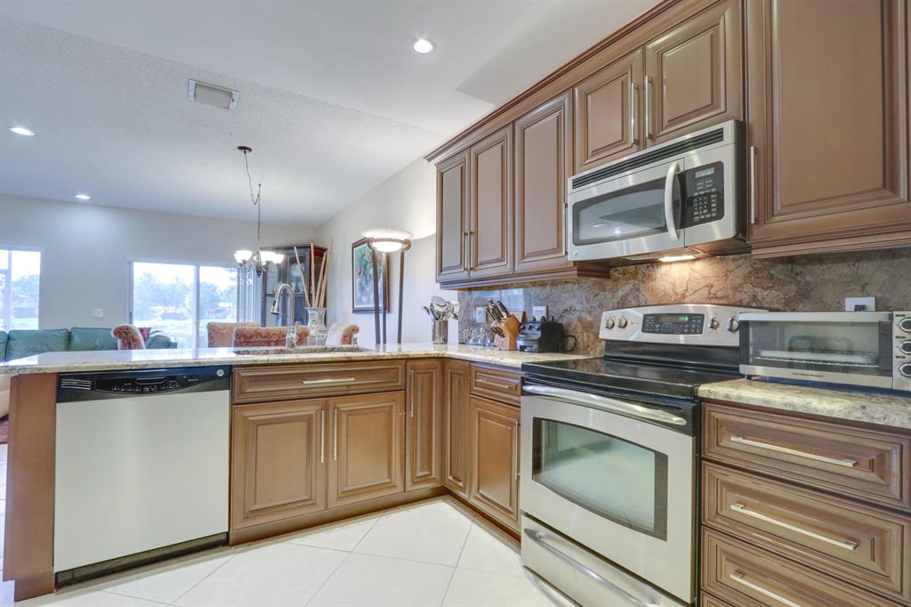 This fully renovated 3 bedroom townhouse is located on one of the best Lakeview sites in the wonderful gated community of Mizner Pointe. The kitchen was opened up creating a wide open and bright living space with gorgeous lake views. The kitchen has beautiful granite counters, high end stainless steel appliances and extra storage. The screened/covered patio looks over the lake in a beautiful park like setting. All 3 bathrooms are completely renovated with granite & marble. Mizner Pointe is a wonderful family friendly community with 24-hr manned security gate, Tennis courts, kids play ground + gorgeous newly renovated Clubhouse with game room and gym. The pool is heated and hot tub is bubbly!!! Pet friendly community.