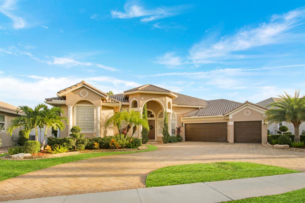 Escape to this immaculate one story Mediterranean masterpiece nestled in one of Boca Raton's best kept secrets - Crystal Cove Estates - an exclusive Logger's Run gated community of 27 homes all on one quiet street lined with elegant Royal Palms. Since being custom built in 2000, this estate has been so impeccably maintained and updated that it feels like a BRAND NEW home featuring the finest finishes throughout! The three-way split bedroom floor plan ensures privacy and is spread out over 3,500+ living sqft with 4 bedrooms + an office/bonus room, 3.1 baths (including cabana bath), and a full size laundry room. The open concept and updated kitchen has a pass through window to the screened in pool/patio, and features solid hardwood cabinets, stainless steel appliances, and