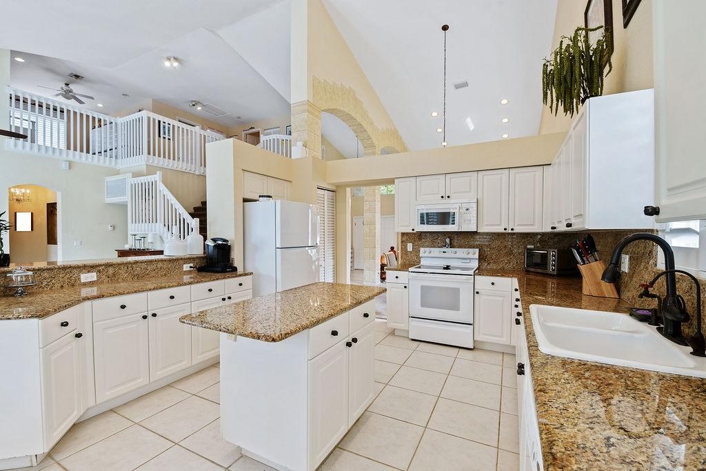 Stunning home in highly sought-after Lexington Estates. This beautifully upgraded Pimlico model has 3-Bedrooms + Den/Office + Large Loft + 2-Full Bathrooms + 1-Half Bathroom and the most desired floor plan in all of the community. Kitchen is well appointed with white cabinetry/Granite Countertops/separate prep Island/Bar Counter Seating and additional eat-in area that easily seats six. Hurricane Impact resistant French doors; Pool & spa recently Diamond-Brighted and entire patio recently resurfaced; Child safety fence around pool; Dual-Zoned Central A/C system; Wired for Full-House generator; Elegant designer touches throughout. *A Rated Schools. Low HOA of $281/month! HOA includes front/back/side yards lawn & landscape maint.; Sprinkler maintenance.