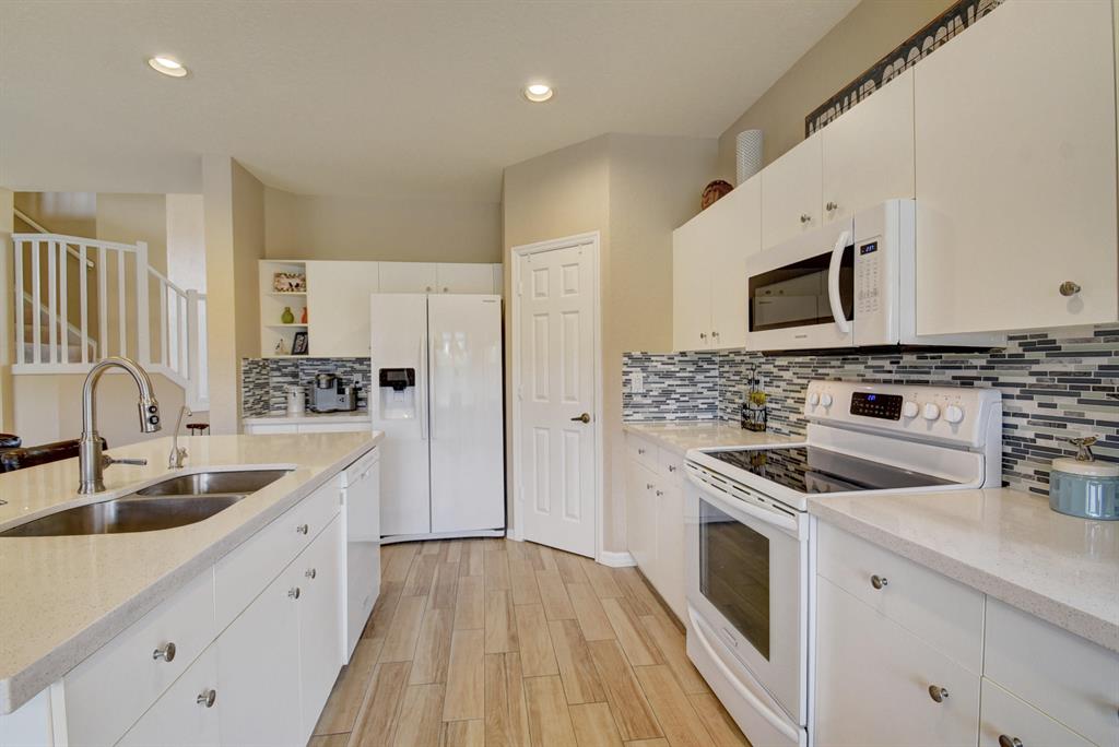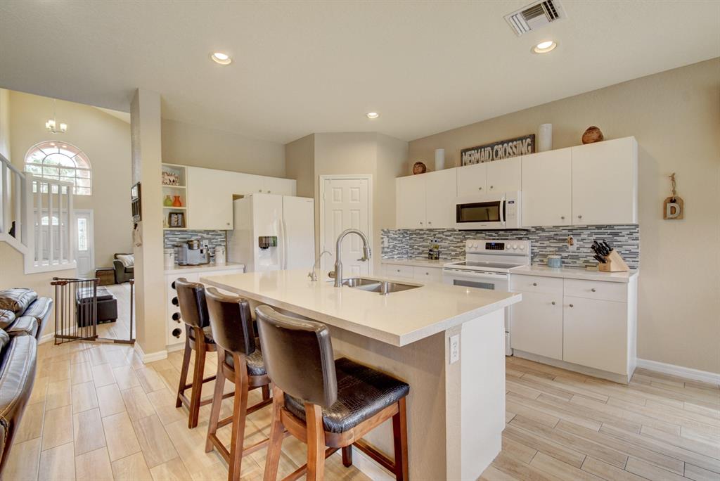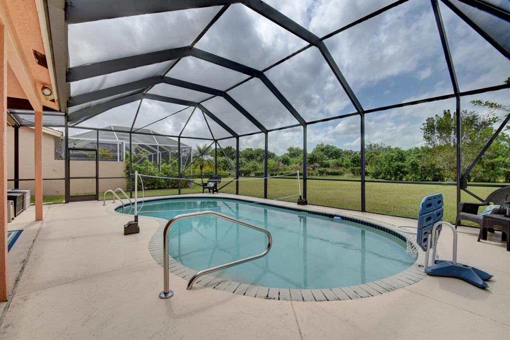 Desirable 4 bed, 3 full bath, 2 story Pool Home on an spectacular oversize lot. Awesome screened pool with sunset views. One bedroom ground floor very private. Upgrades in kitchen with white quartz countertop. Newer Roof 2017! Newer Wood Tile Floors. Accordion Shutters throughout. Freshly painted inside and out. Huge yard, .22 acre lot. Immaculate! Move right in.