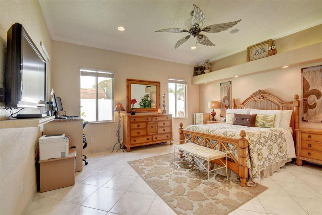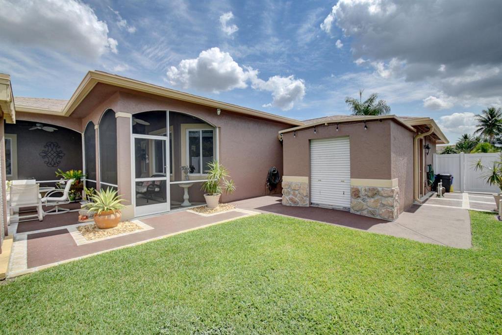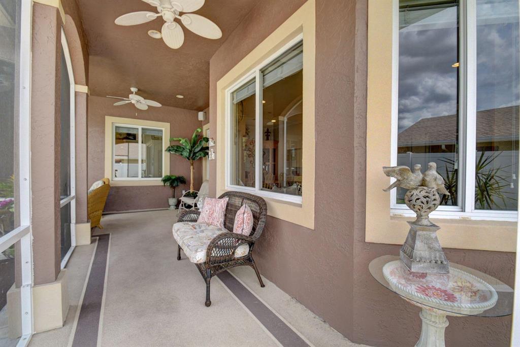 This home is one of a kind! It features two master suites, each with walk-in closets and en-suite bathrooms. Custom built in cabinetry throughout this home provide abundant and effortless storage. Inside you will find crown moulding, high hat lighting, granite countertops and backsplash in the kitchen. Outside features include, well manicured landscaping, a covered and screened patio, a built in shed for additional storage and fully enclosed yard with new pvc fence. Brand new hurricane rated garage door and an expanded double driveway. Most windows have impact glass for better protection. Sprinklers are on well system for water economy. Brand new roof with aluminum gutters, both A/C units about 7 yrs old and water heater 3 yrs old. Seller is willing to remove the aviaries in the yard.