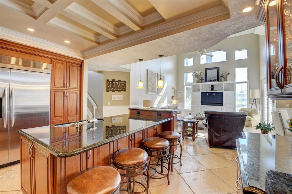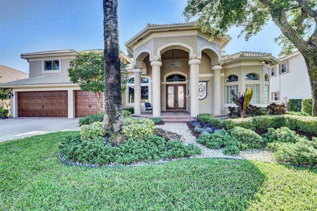 SELLER IS MOTIVATED TO SELL! PRICE ADJUSTMENT ! SELLER IS RELOCATINGFOR BUSINESS . OUTSTANDING LAKEFRONT . Vastly Updated an Upgraded. Beautiful in/out and maintained to perfection . Custom kitchen with Stainless Steel appliances, granite countertops, double oven, Sub zero Ref. Features included,New Impact Decorative Front Doors and Hurricane Garage doors. Solar Panels for around the year swimming . Outdoor kitchen. plus a Motorized Awning . Fenced Backyard . Portable Generator and Separate Electrical panel .Built in entertainment center with surround sound speakers inside and outside. Great for Entertaining!Beautiful Travertine Stone Floors though out lower level. Plantation Shutters throughout. HOA includes 24 man guard gate, fitness, pool/spa,tennis,basketball and playground