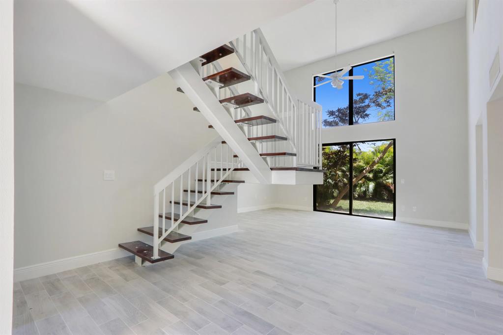 Totally redone townhouse in the heart of Boca Raton. This amazing home has three bedrooms each with their own bathroom.Master has two large walk in closets and a separate area just before the bathroom entrance with a additional large vanity,mirror and white quartz top The bath boast a amazing soaking tub and a separate seamless glass shower.Sliding glass doors run across the length of the bedroom out to the patio.There is another bedroom and bath that faces the front of the house. Downstairs the eat in kitchen has stainless steel appliances and lots of cabinets and counter space. large living room with 18 foot vaulted ceilings.The HOA has approved the painting and stucco/fascia repair which will begin in a few weeks Plants and shrubs will be removed and replaced as necessary.