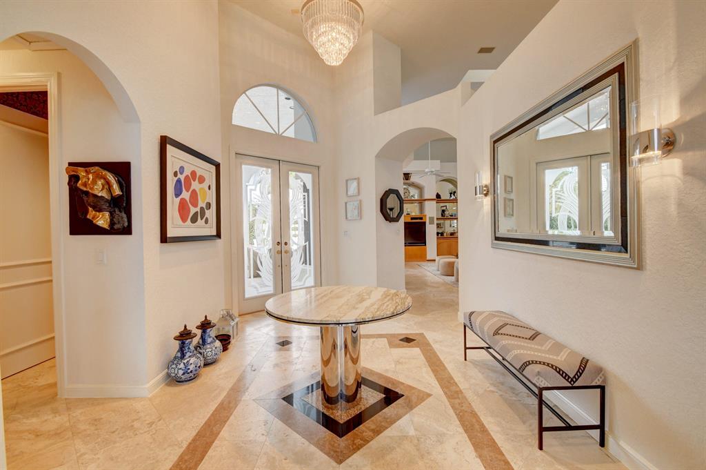 This light & open one-story 4 bedroom/4 1/2 bath home offers the privacy of a courtyard & tranquility of spectacular lake views! Tasteful appointments include volume & tray ceilings with crown moldings & speakers, Saturnia marble floors & upgraded carpeting, a beautiful built-in library,elegant built-ins in the Family Room,Master Bedroom & Dining Room,an open kitchen with white high-gloss cabinets & granite counters,instant hot & water filtration,wet bar with granite counter, custom window treatments,custom closet design,skylights & extra high-hat lighting,custom framed mirrors, solid core molded doors,intercom & central vacuum,oversized 2-car garage,metal & acrylic hurricane panels, extensive landscaping & a wonderful patio area perfect for entertaining with a grill, freeform pool & spa.