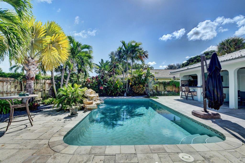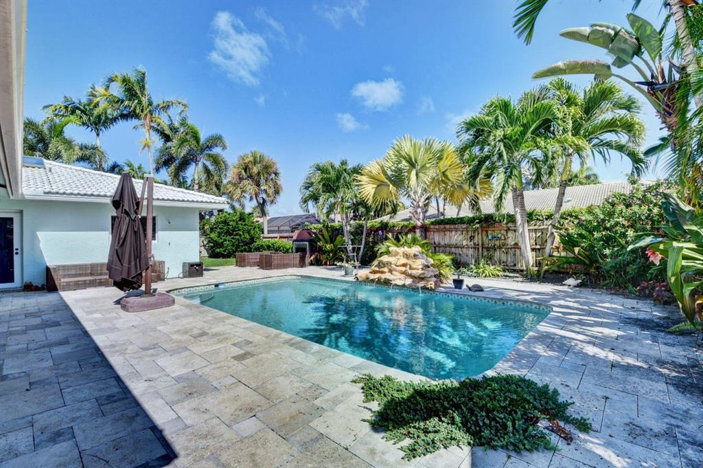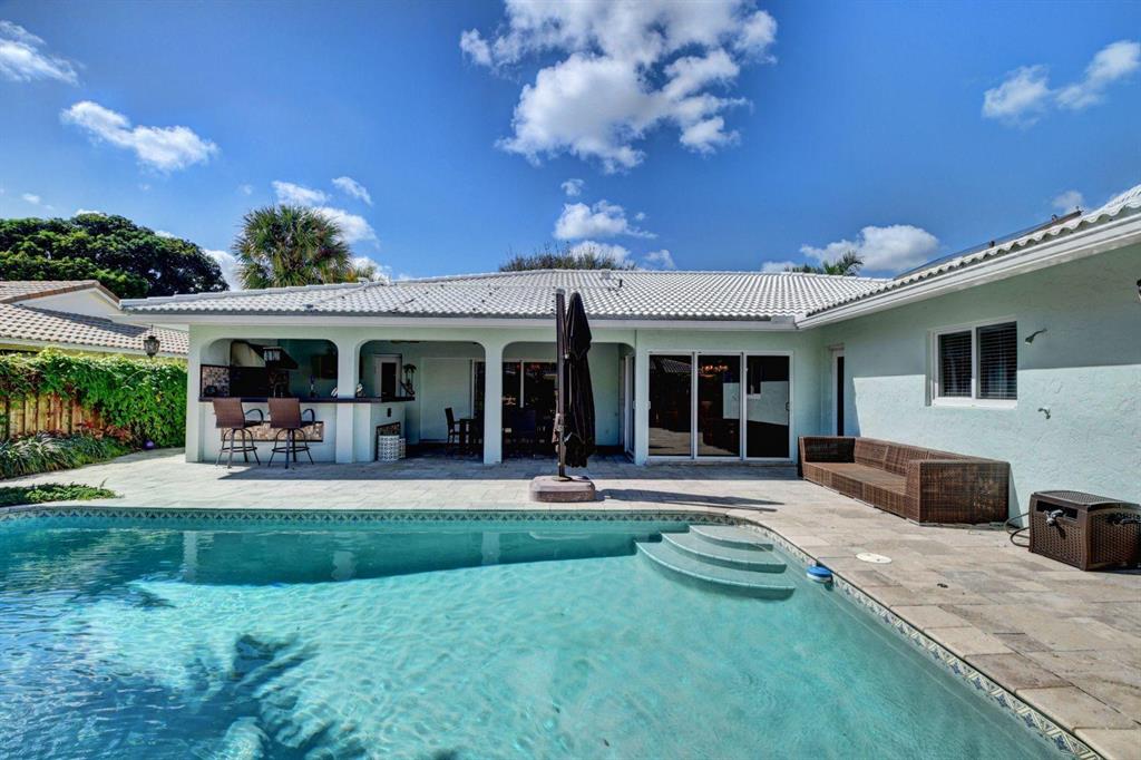 Completely remodeled and updated 4BD/3BA pool home in the very desirable Carriage Hill neighborhood in East Boca Raton. Features include complete impact windows and doors, thick veneer Brazilian Cherry wood flooring, newer AC, newer appliances, speakers throughout, outdoor kitchen and travertine deck. Relax at the outdoor patio with wood-burning fireplace which sits near the pool and waterfall. Outdoor kitchen includes grill, refrigerator, and sink. State-of-the-art custom garage comes complete with AC and cable.Close to beaches and shopping including Mizner Park. A-rated school district.