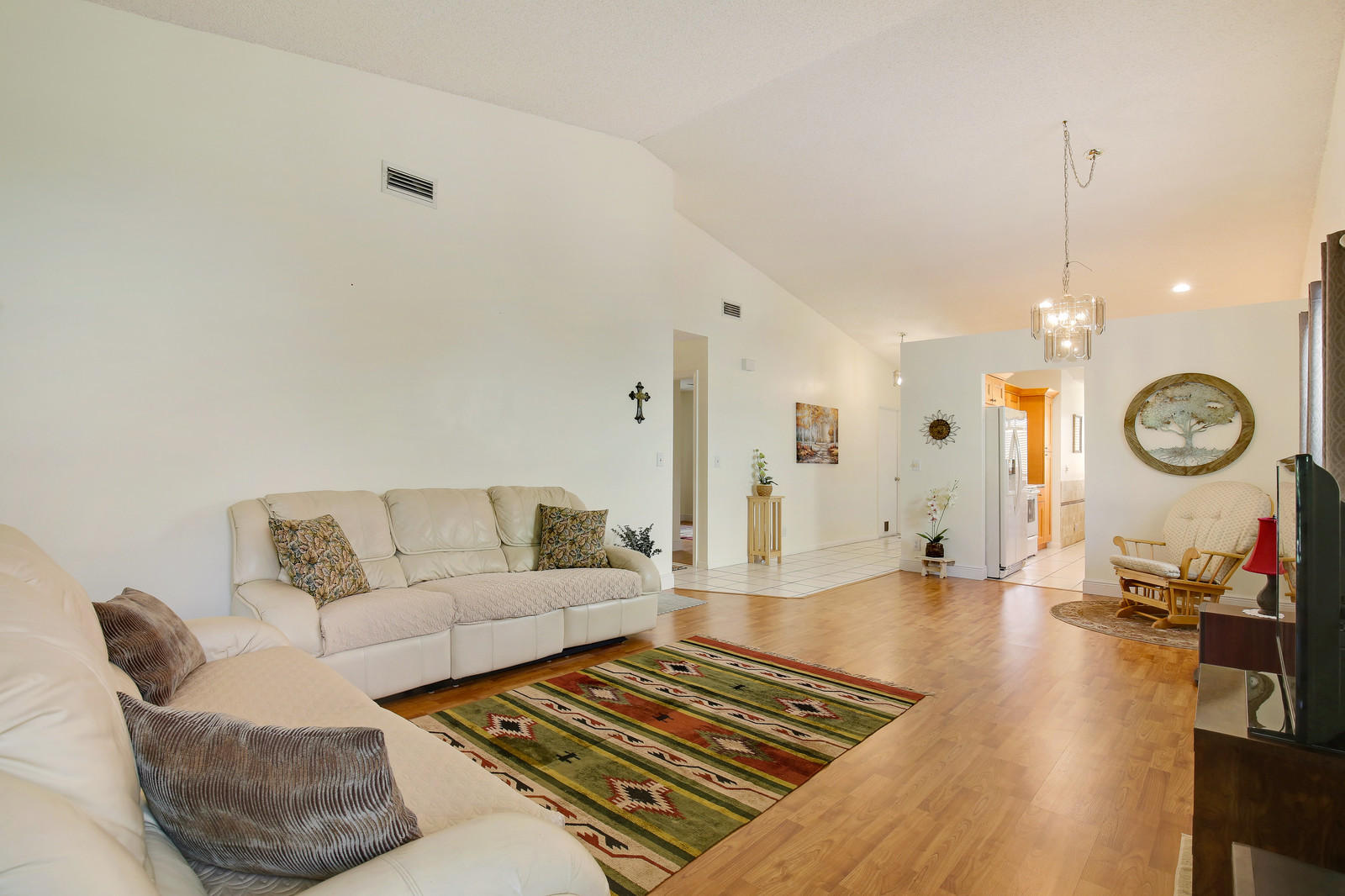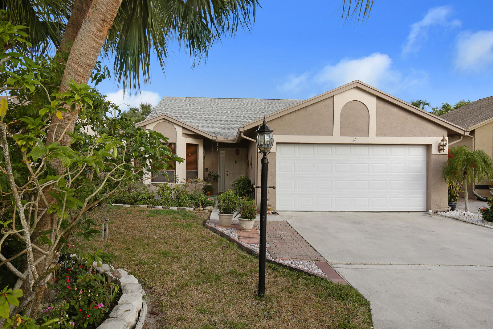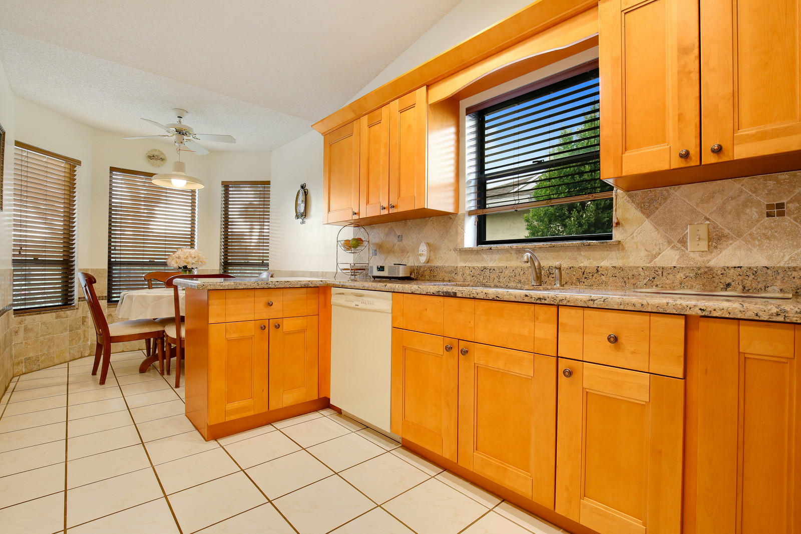 Beautifully updated, well maintained, 3 bedroom, 2 bath, 2 car garage, SFH with a screened patio. Large open living room with vaulted ceilings. Kitchen renovated w/ granite counters & stone backsplash in 2014. Appliances 2009. Lovely, sunny breakfast room off of the kitchen. Laminate flooring in living area and all bedrooms. Freshly painted interior. The patio was rescreened in 2014. Roof replaced in 2005.Brand new hurricane rated garage door. Sprinklers on timer. Heated community pool. Low HOA, A rated schools. All ages kids and pets are welcome. No renting for 2 yrs. FHA/VA approved.This home is priced to sell, don't miss out!.