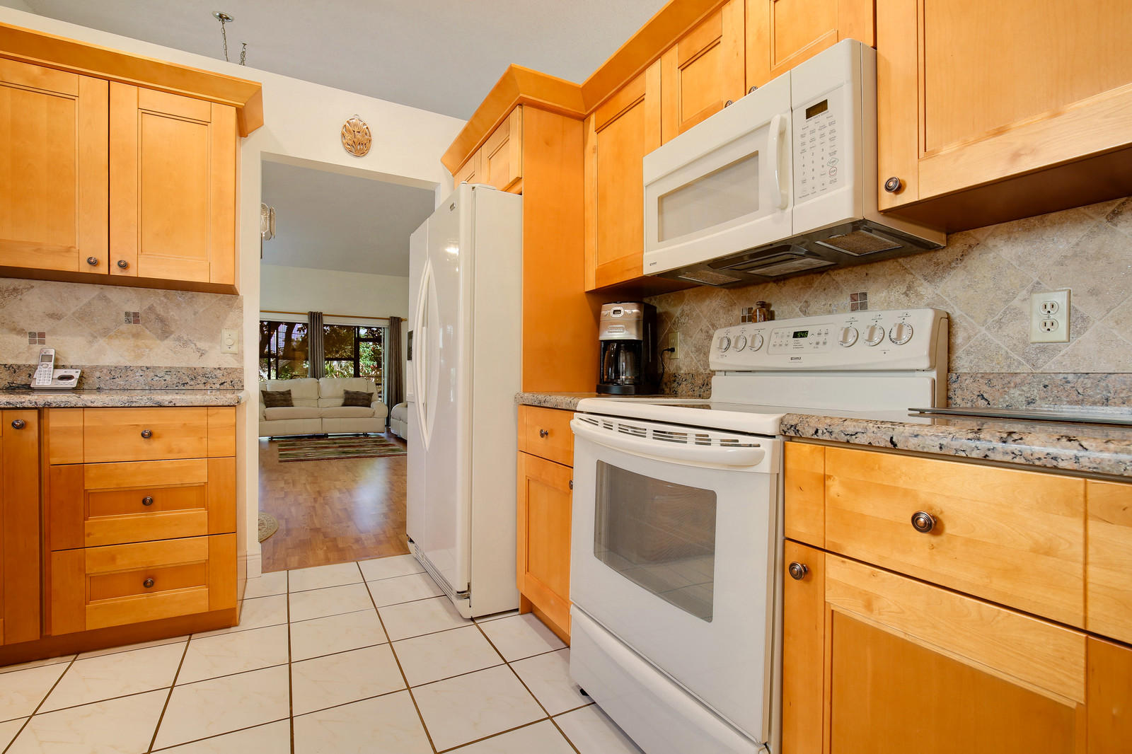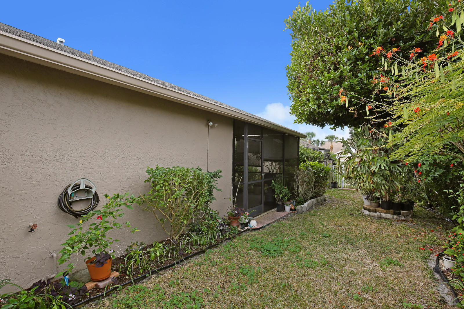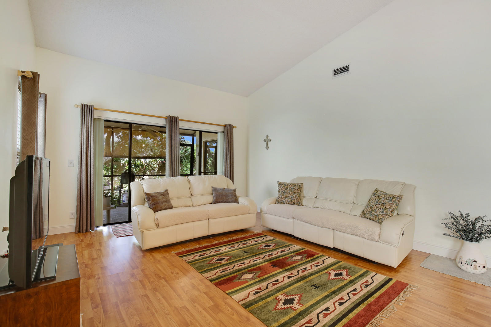 Beautifully updated, well maintained, 3 bedroom, 2 bath, 2 car garage, SFH with a screened patio. Large open living room with vaulted ceilings. Kitchen renovated w/ granite counters & stone backsplash in 2014. Appliances 2009. Lovely, sunny breakfast room off of the kitchen. Laminate flooring in living area and all bedrooms. Freshly painted interior. The patio was rescreened in 2014. Roof replaced in 2005.Brand new hurricane rated garage door. Sprinklers on timer. Heated community pool. Low HOA, A rated schools. All ages kids and pets are welcome. No renting for 2 yrs. FHA/VA approved.This home is priced to sell, don't miss out!.