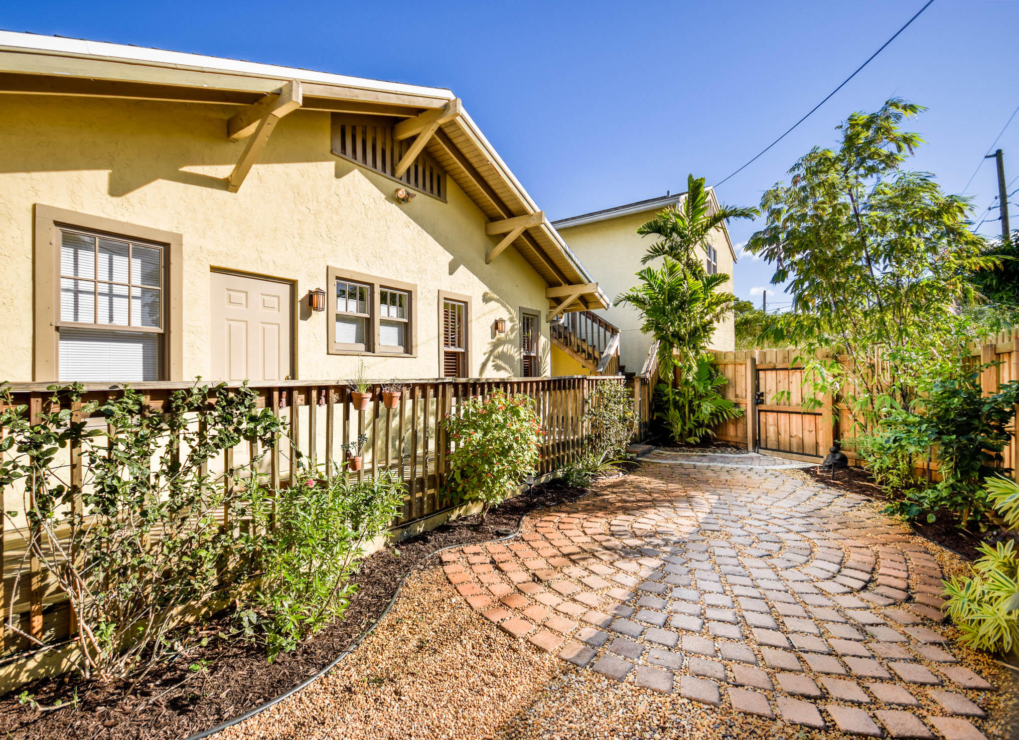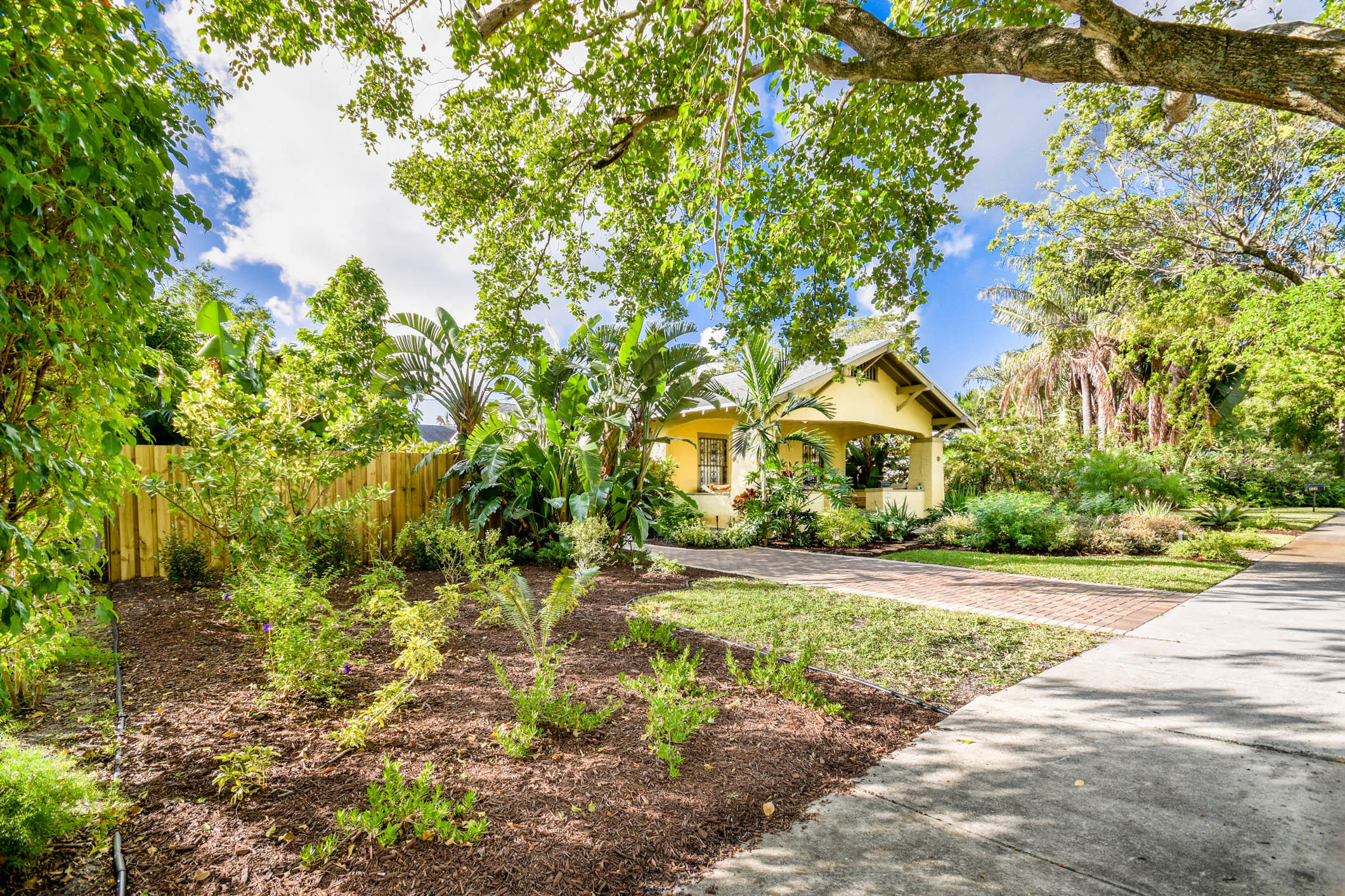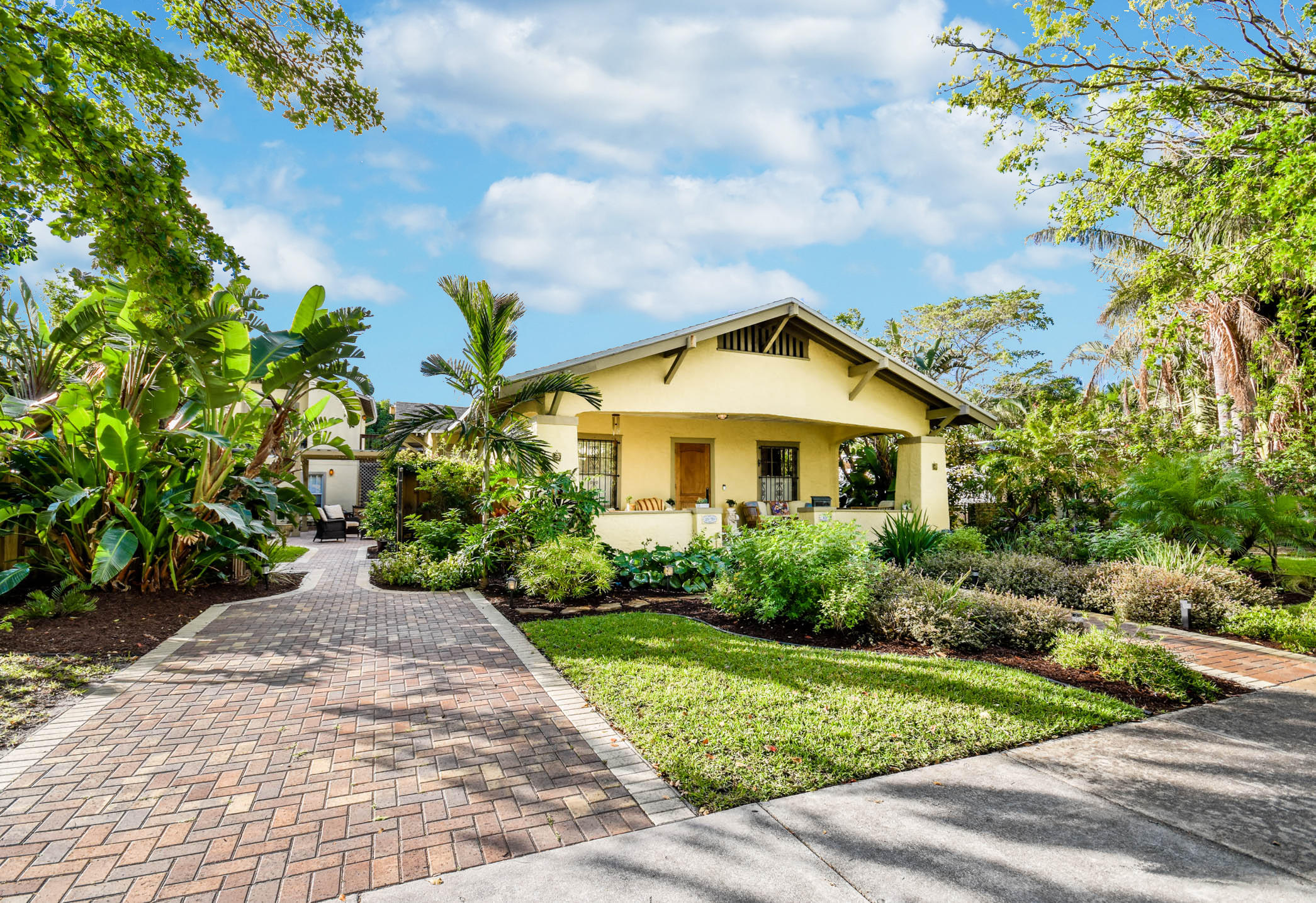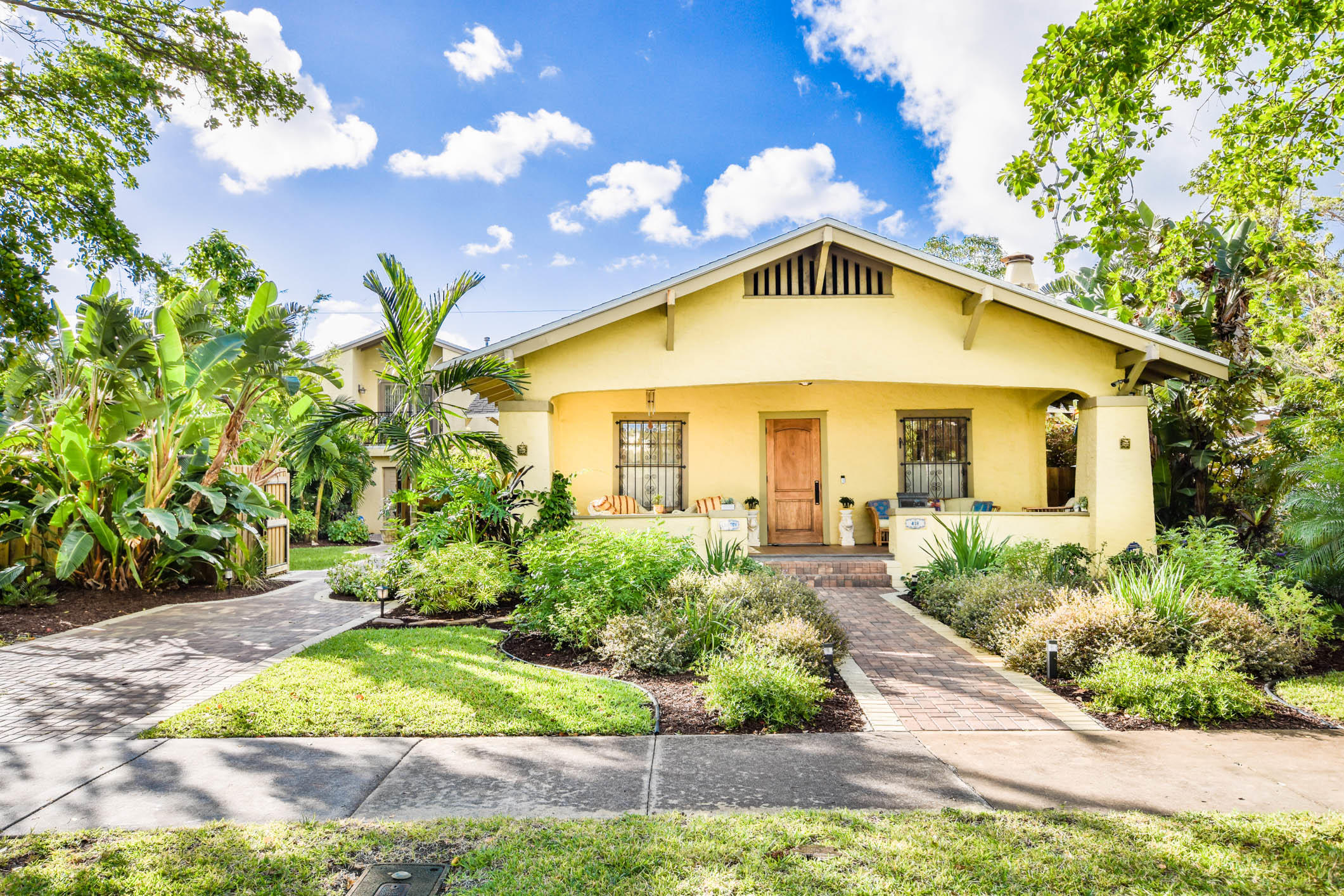 True to it's original design as a Florida Craftsman Style Bungalow completely refurbished in 2000. Gorgeous Dade County Pine floors throughout, with solid wood doors, and woodwork. Tall ceilings and open living areas with a gas fireplace, make for a very inviting space. The main house is 4 bedrooms, and 2 baths, with a guest house over the 2 car garage that is newer CBS construction. The house sits on a large lot with room for a pool. Entering the large front porch typical to a Craftsman house, the front door is a mahogany impact door, and the sliders out to the patio are also impact glass. A large 1st floor master suite added in the renovation. New kitchen w/prof. gas range, double dishwasher, and a butlers pantry w/bar area, and laundry room. The landscaping is professionally done.