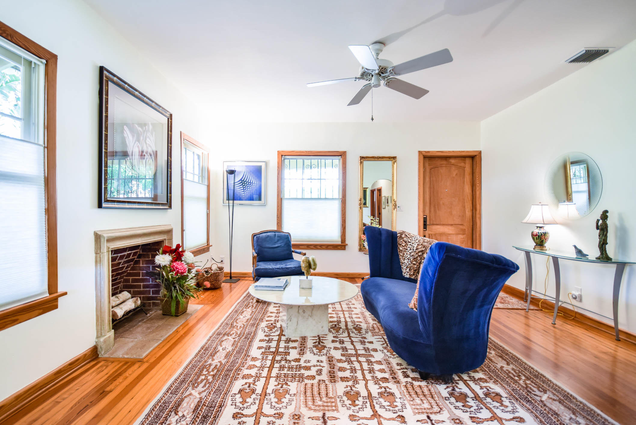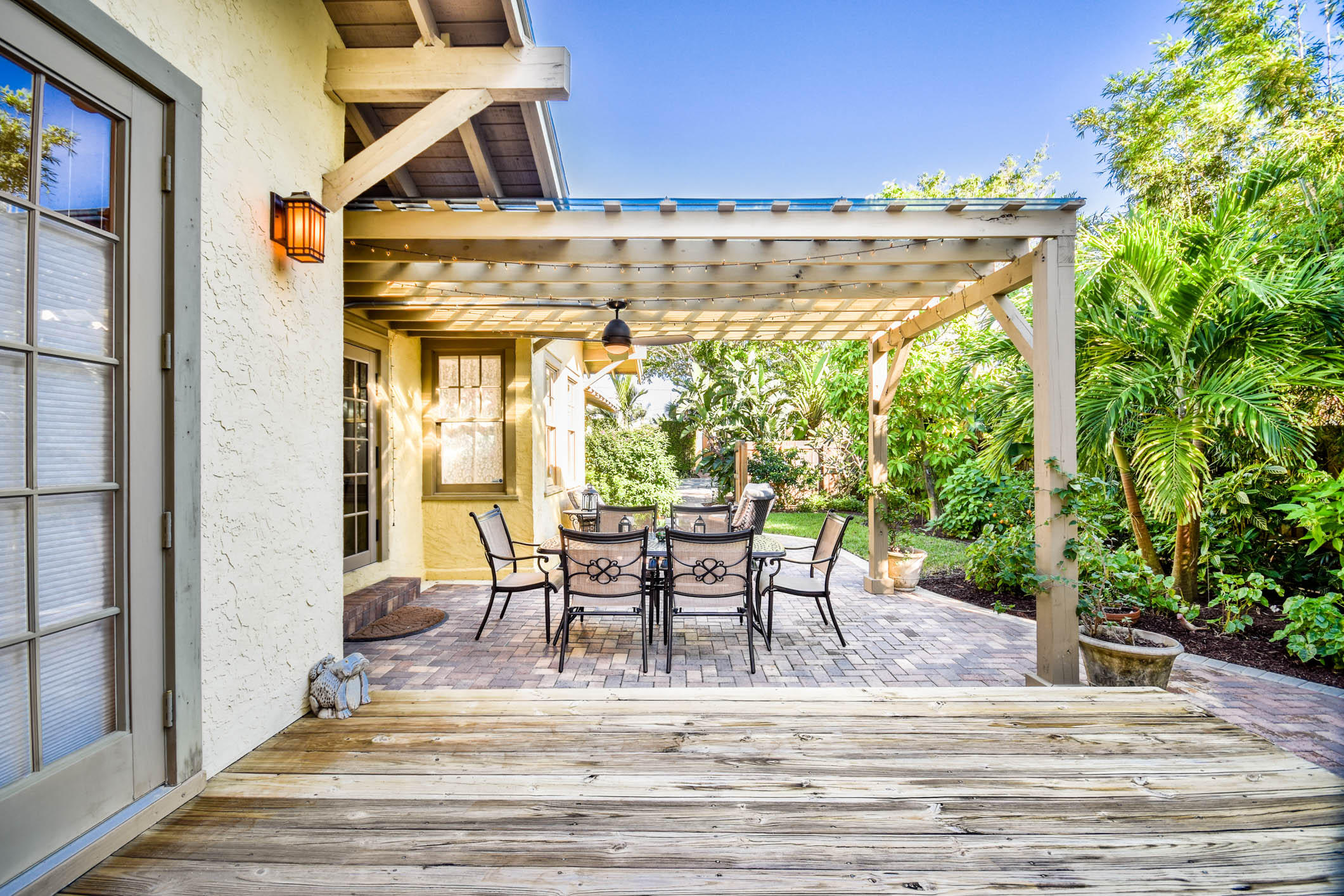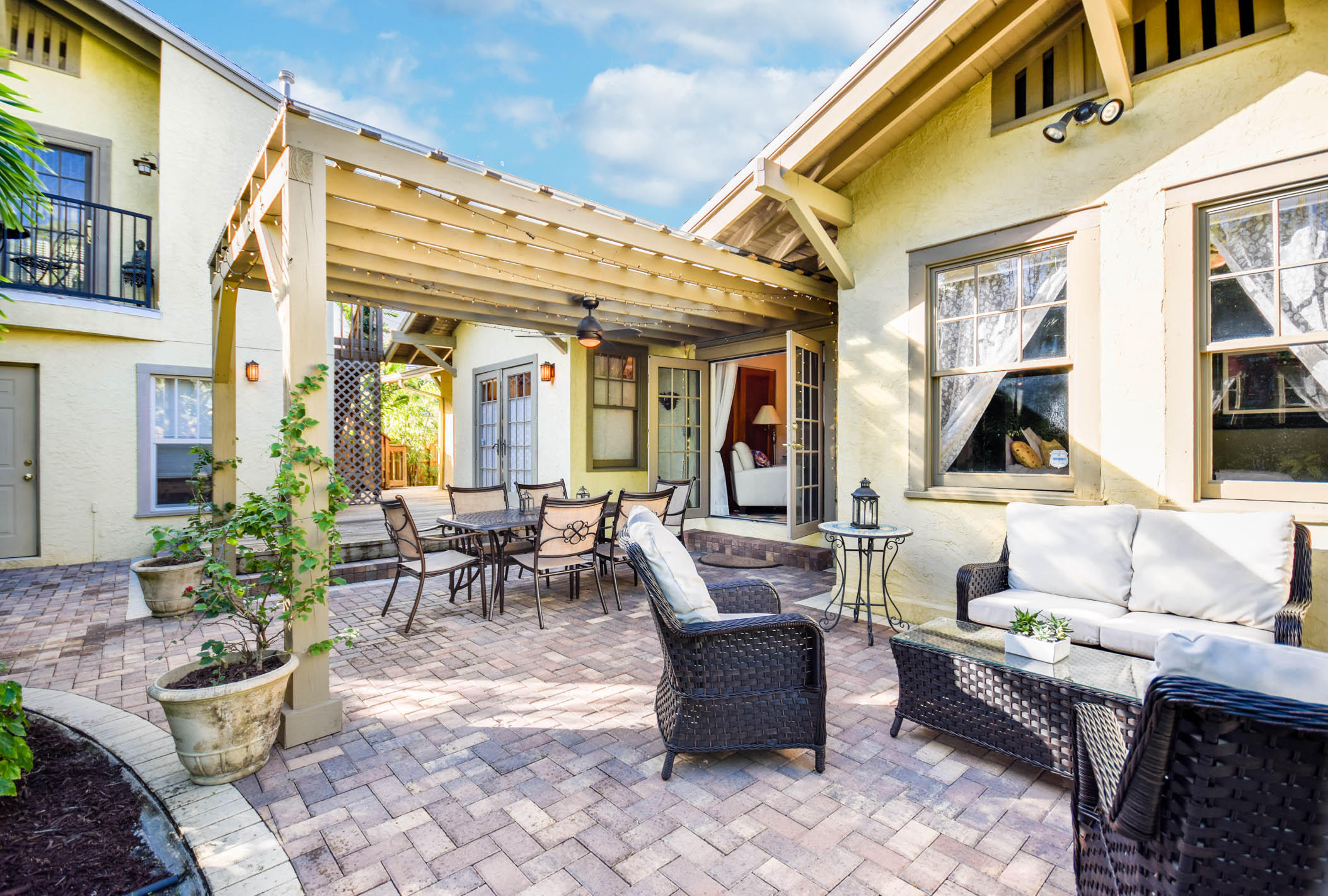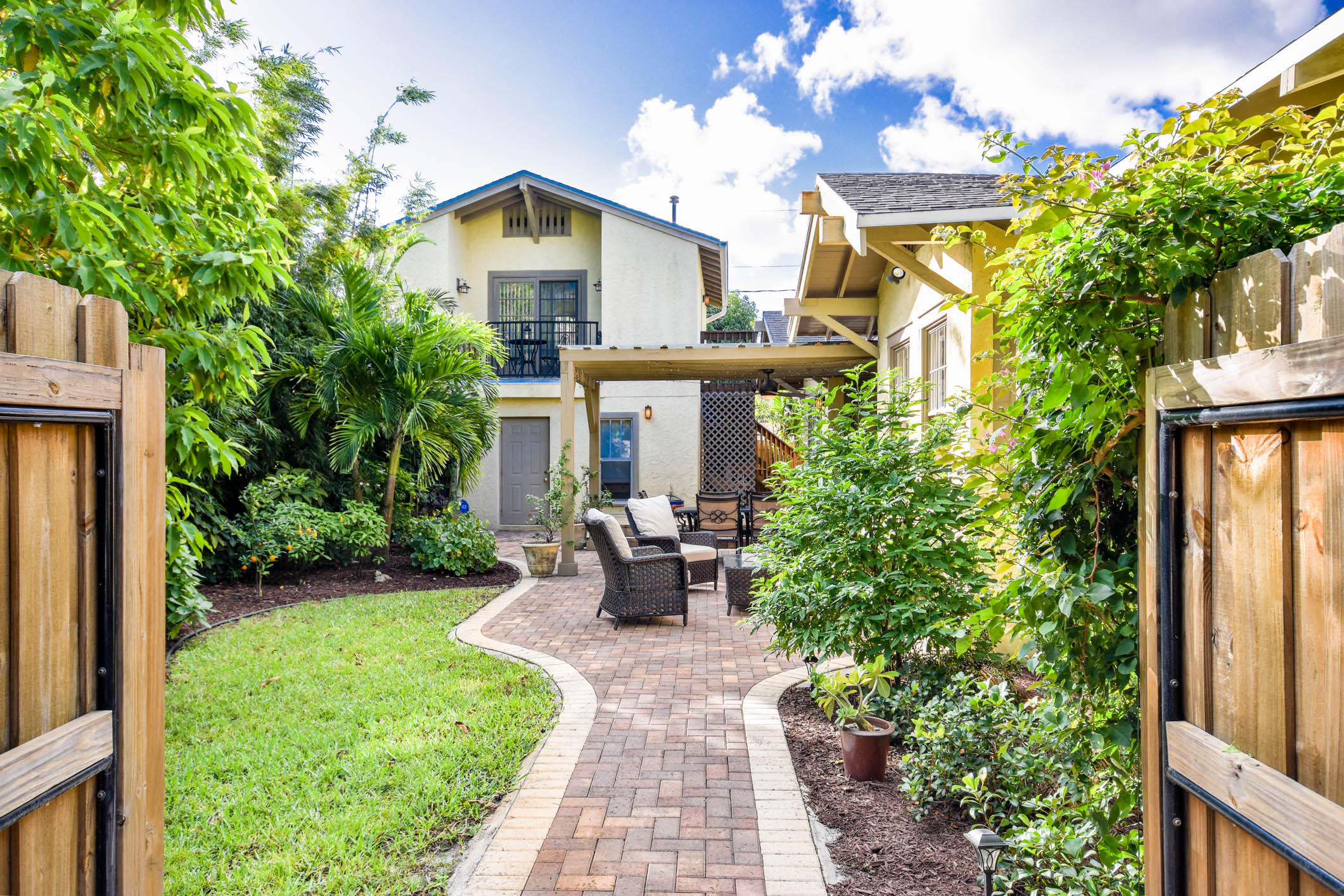 True to it's original design as a Florida Craftsman Style Bungalow completely refurbished in 2000. Gorgeous Dade County Pine floors throughout, with solid wood doors, and woodwork. Tall ceilings and open living areas with a gas fireplace, make for a very inviting space. The main house is 4 bedrooms, and 2 baths, with a guest house over the 2 car garage that is newer CBS construction. The house sits on a large lot with room for a pool. Entering the large front porch typical to a Craftsman house, the front door is a mahogany impact door, and the sliders out to the patio are also impact glass. A large 1st floor master suite added in the renovation. New kitchen w/prof. gas range, double dishwasher, and a butlers pantry w/bar area, and laundry room. The landscaping is professionally done.