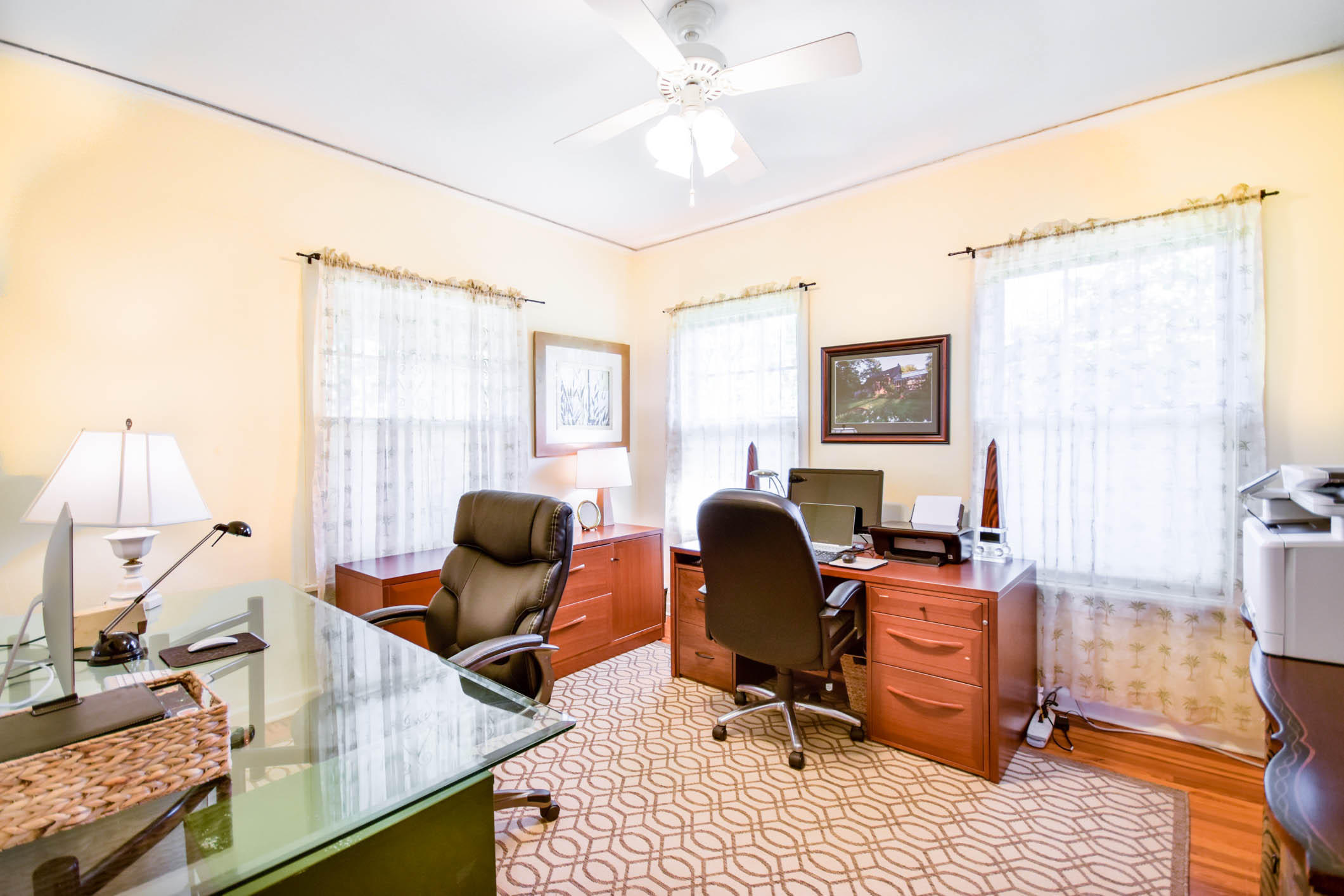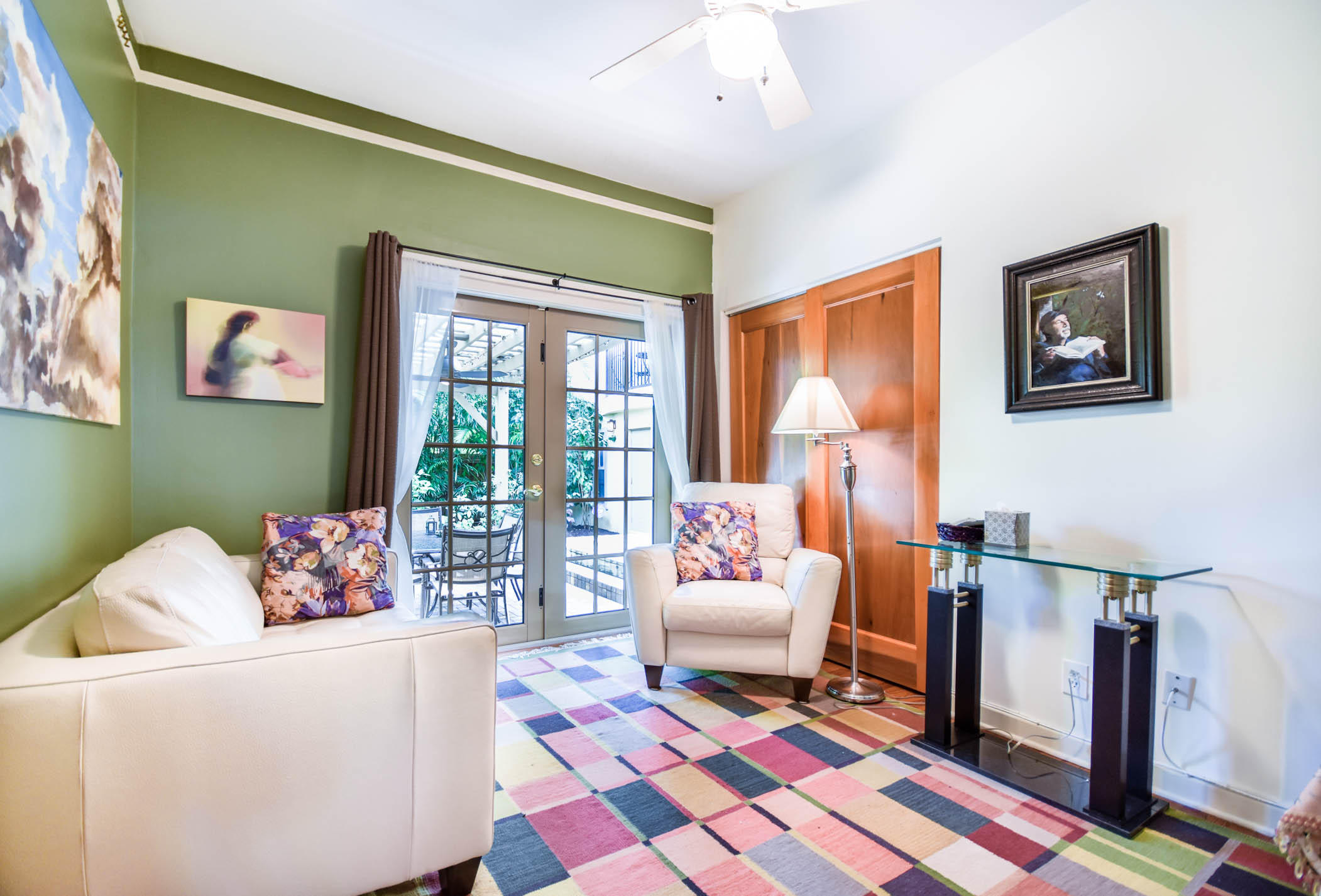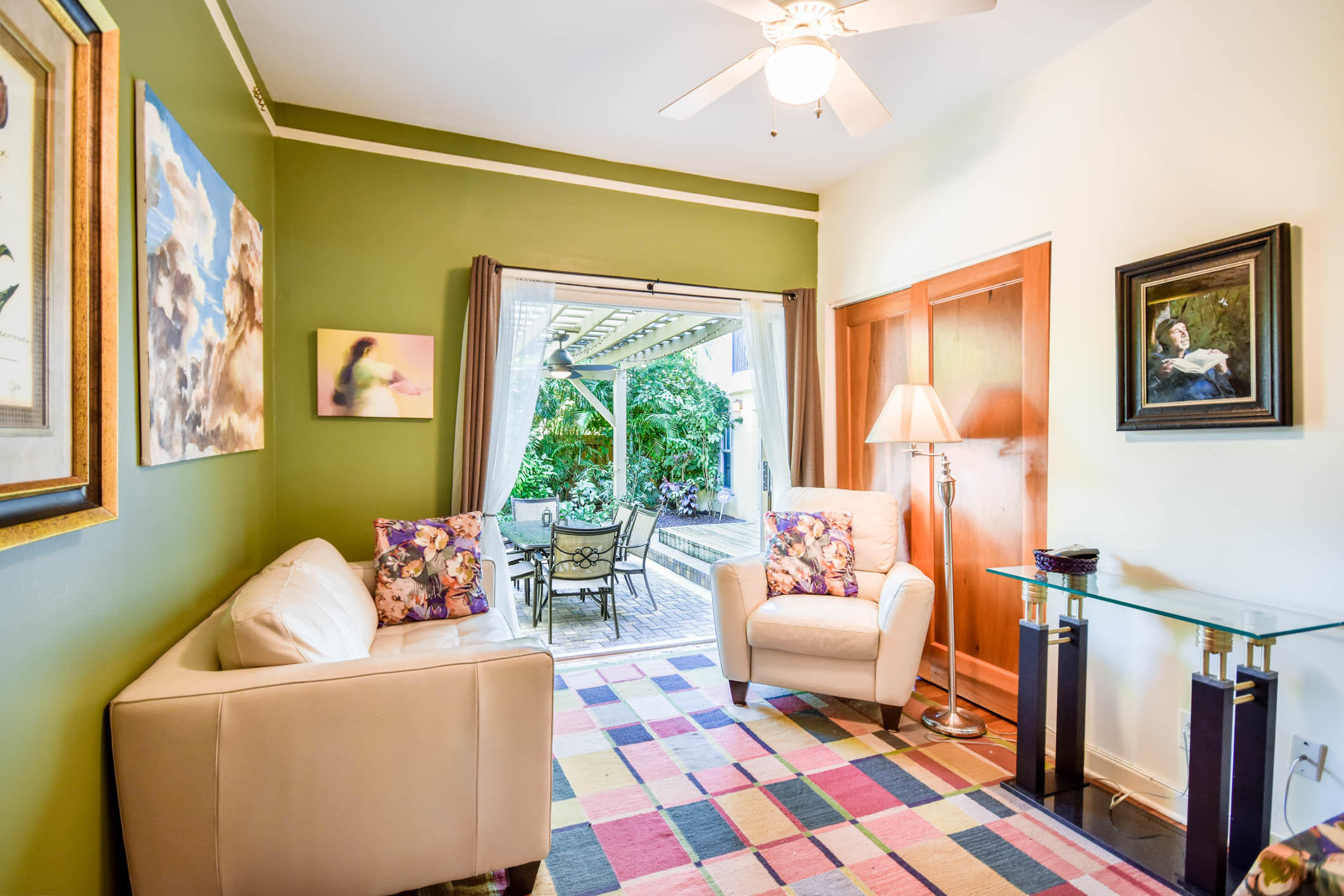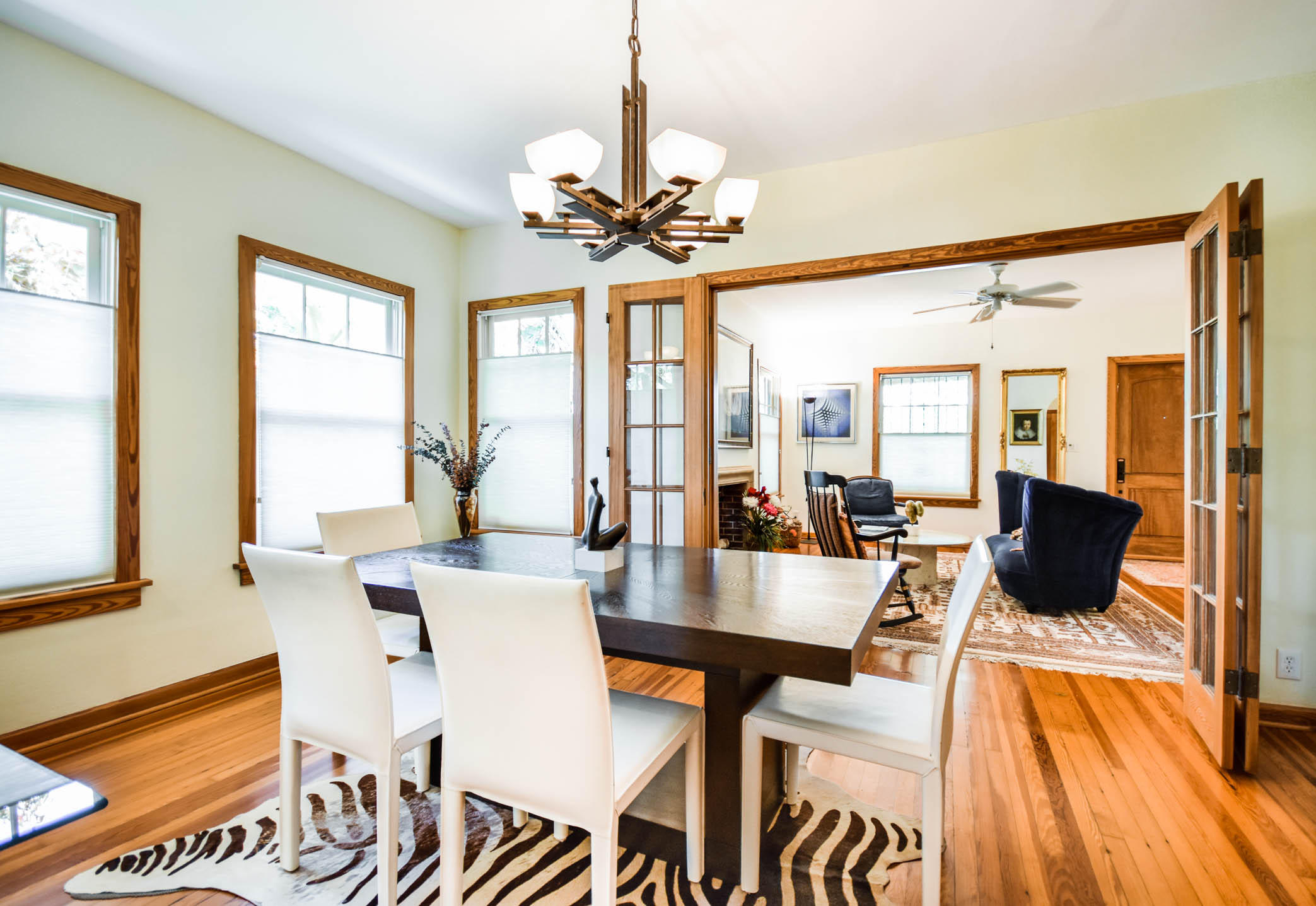 True to it's original design as a Florida Craftsman Style Bungalow completely refurbished in 2000. Gorgeous Dade County Pine floors throughout, with solid wood doors, and woodwork. Tall ceilings and open living areas with a gas fireplace, make for a very inviting space. The main house is 4 bedrooms, and 2 baths, with a guest house over the 2 car garage that is newer CBS construction. The house sits on a large lot with room for a pool. Entering the large front porch typical to a Craftsman house, the front door is a mahogany impact door, and the sliders out to the patio are also impact glass. A large 1st floor master suite added in the renovation. New kitchen w/prof. gas range, double dishwasher, and a butlers pantry w/bar area, and laundry room. The landscaping is professionally done.