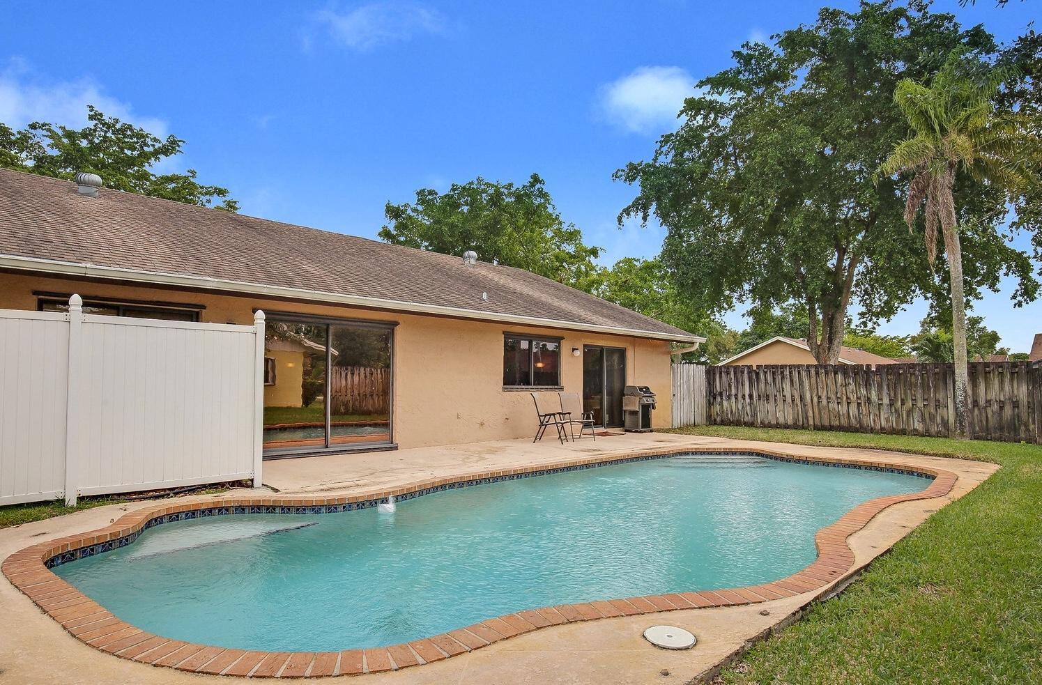 RARELY AVAILABLE WOODBRIDGE - highly sought after community with all "A" rated schools!Come see this one-owner well maintained home in central Pembroke Pines neighborhood! Open floor plan, designer wood-look laminate floors, large kitchen w/ breakfast bar, formal dining & living area. Large Pool on corner lot - great for families! New fence to be installed before closing - permits in place! Full set of shutters & hurricane slider doors (family room), partially converted garage to bonus room & closet - easily converted back. No HOA - voluntary $35 p/yr. Don't miss the opportunity to make this your new home!!!