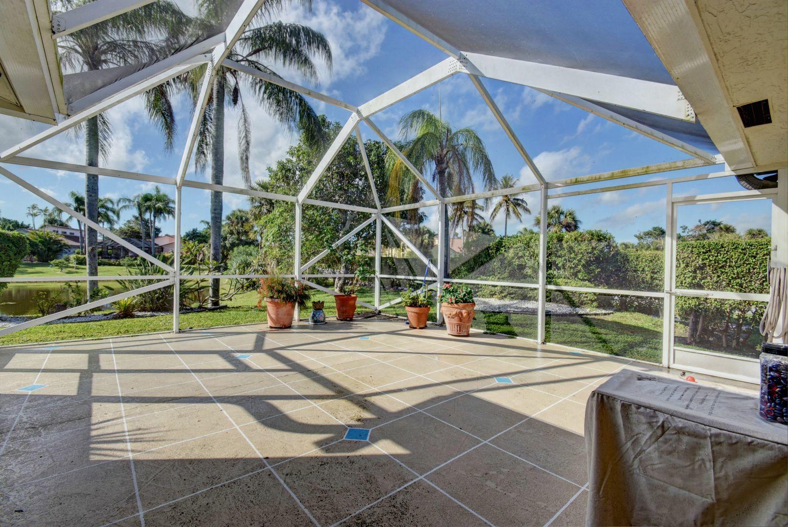 Great corner lake view home with vaulted open beam ceilings, updated kitchen with granite and stainless steel appliances, updated bathrooms and tile flooring throughout! A/C is 2016! Upgraded washer/dryer. Brand new generator included. There is an oversized screen enclosure to entertain outside by the lake.No club membership required.