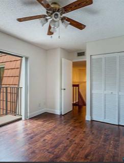 Back 0n the market due to a credit score denial from the HOA. BE ADVISED A 665 CREDIT SCORE IS A REQUIREMENT FOR HOA APPROVAL. Beautiful 3 bdrm townhome 2.5 baths.Newer roof, Newer kitchen cabinets,granite counters,Master bedroom w2/mirrored walk in closets. freshly painted. Wood and tile floors.balconies upstairs, Hurricane shutters. patio court yard w/slate floor. newer ac unit, newer water heater,MOVE IN CONDITION. Dog friendly neighborhood. Basketball,lighted Tennis courts.Picnic Bbq area,Community pool.Close to 595, shops and stores.