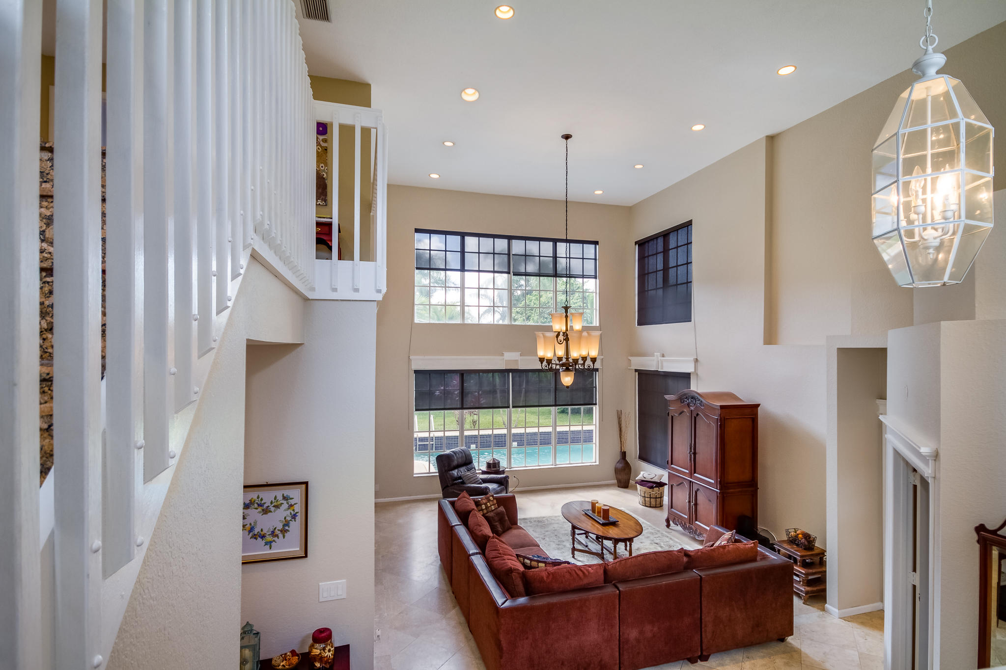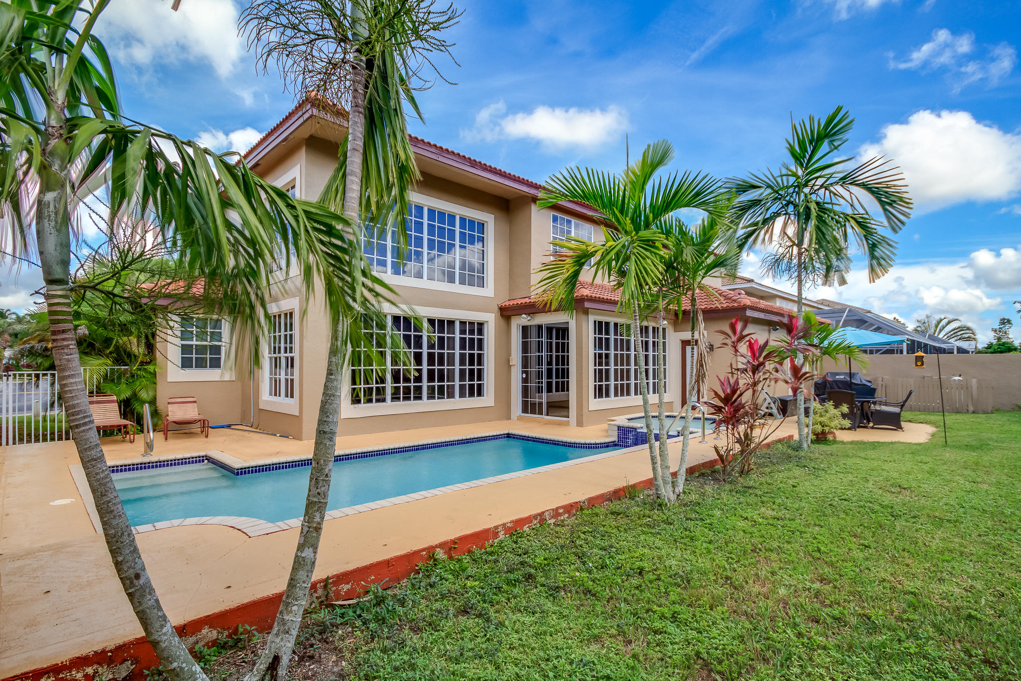 Don't miss out on this stunning 5 bedroom, 4 bathroom + den pool home on a private lot backing up to the Boca Woods golf course! This impressive home features a renovated, bright and open kitchen with stainless steel appliances, granite countertops and additional built in desk and storage. The large second story master bedroom overlooks the private backyard with pool and spa and features a jaw-dropping spa-like master bath complete with huge soaker tub. The entire home features neutral tile or composite wood throughout, central-vaccum, granite stairs, tall ceilings, neutral wall colors, huge windows and recessed lighting which all make this home exceptionally open and bright. Beautiful french doors lead to the first floor office off of the family room and all other bedrooms upstairs.