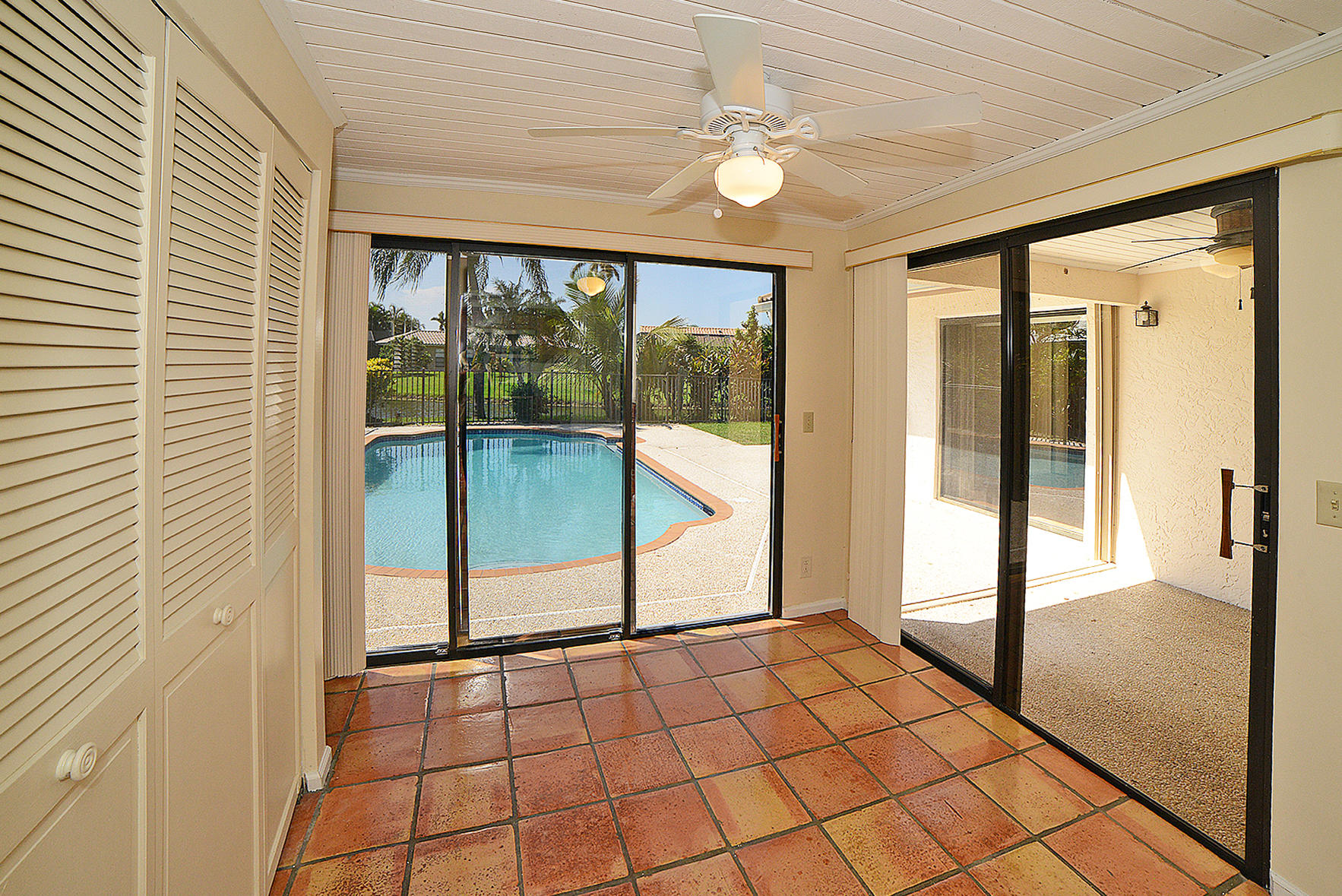 Location...Location...LocationWelcome to this beautifully maintained home located in the non equity Country Club of Boca Greens. This three bedroom two bath home features an open floor plan, Mexican tile throughout, new stainless steel appliances, granite counter tops, remodeled master bathroom, remodeled guest bathroom and a private pool with a covered lanai surrounded with lake views.The master bedroom overlooks the pool area and the guest bedrooms are split. The roof was replaced 2009.This desirable West Boca location is close to shopping, parks and restaurants.